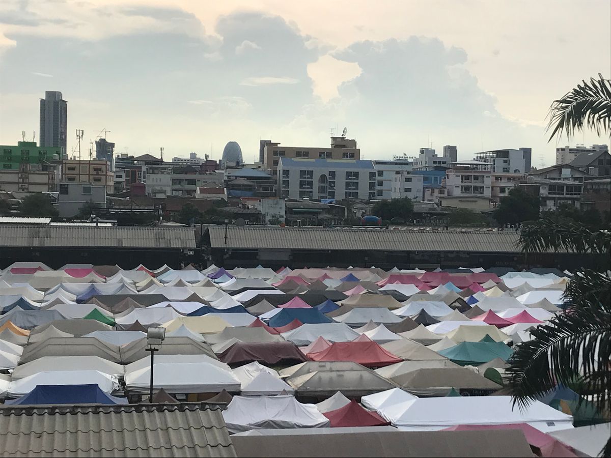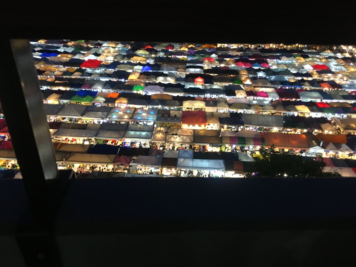 ピンクガネーシャは有名ですが、なんでもありの寺の感じは、個人的にはあまり好みではなかったです。鉄道夜市ラチャダーが見える立体駐車場で現地解散になります。地下鉄駅まで、週末のため大混雑でした。