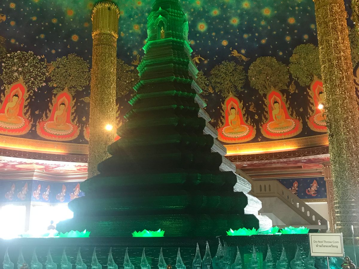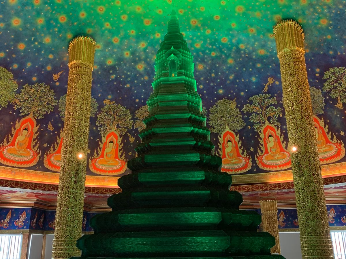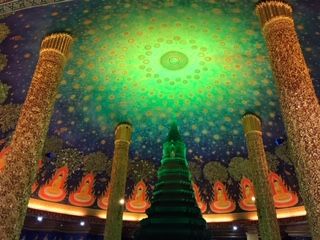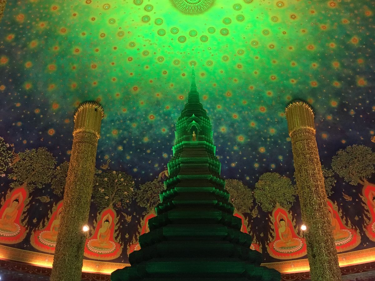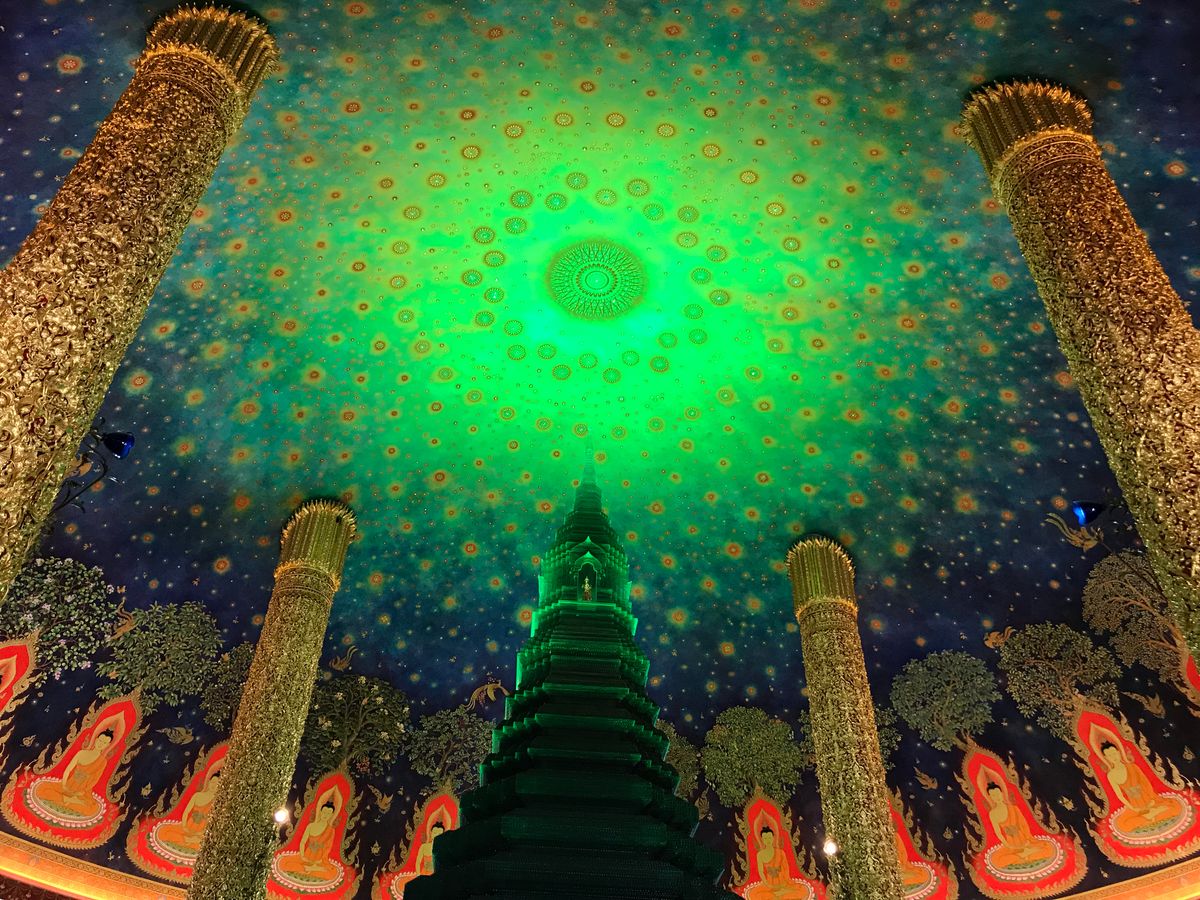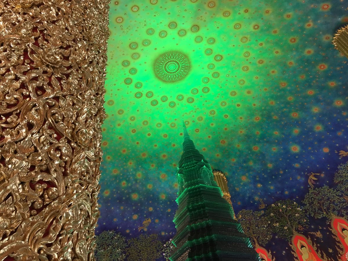 ワットパクナムは、天井がエメラルド色でキラキラしており、見入ってしまいました。あまり人もおらず、ゆっくり見学することができました。