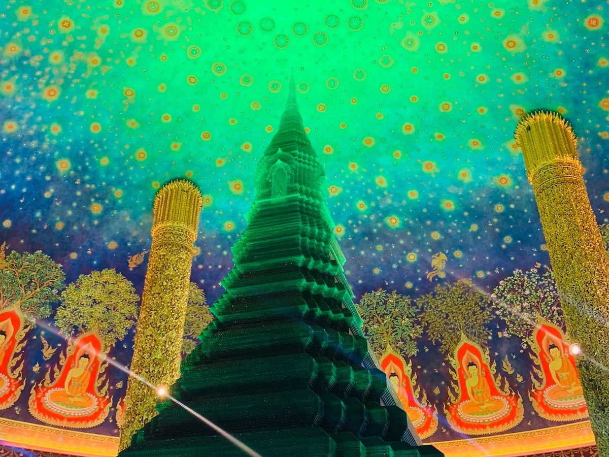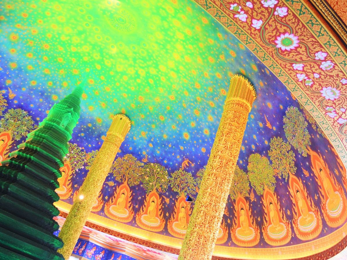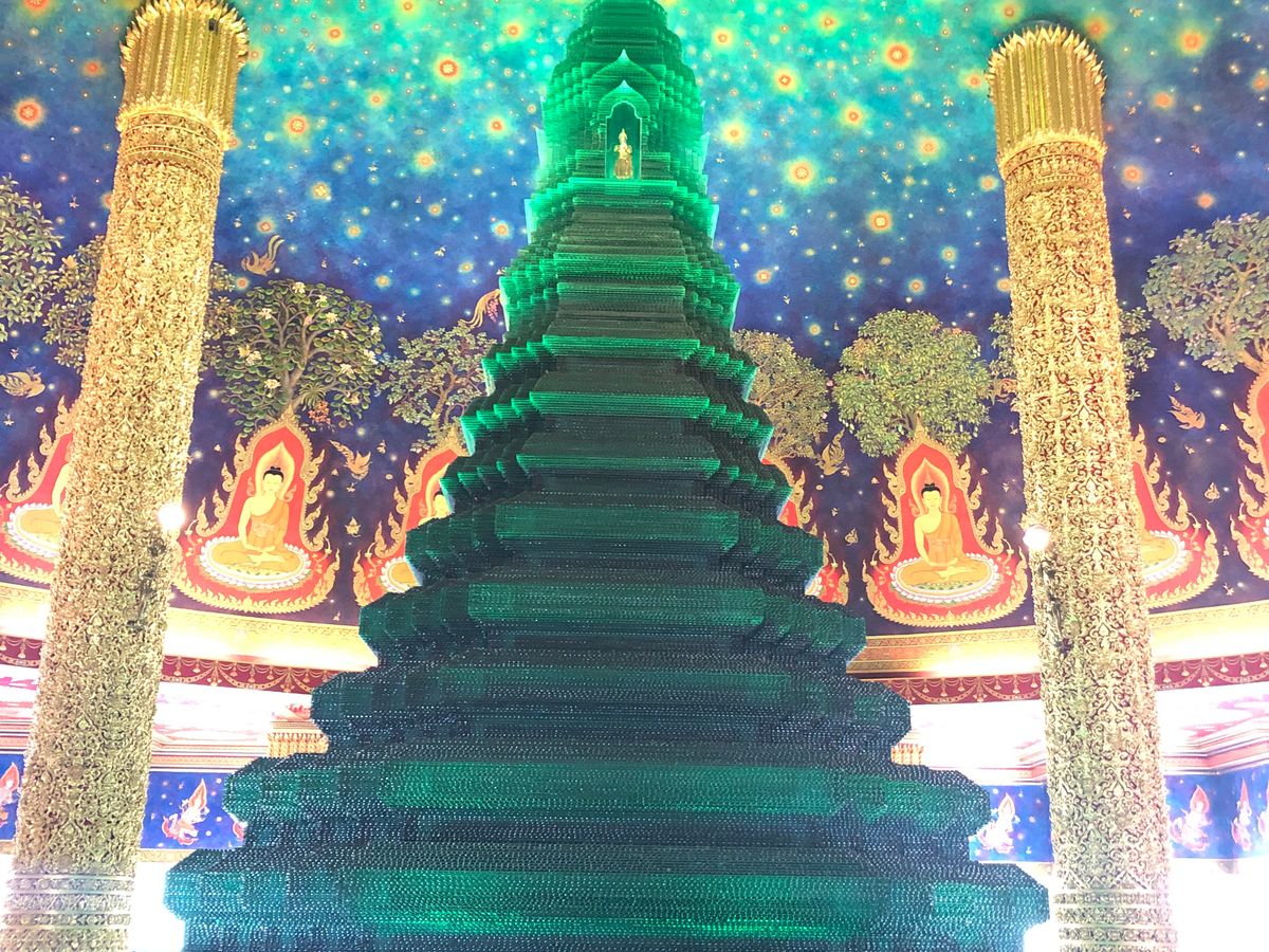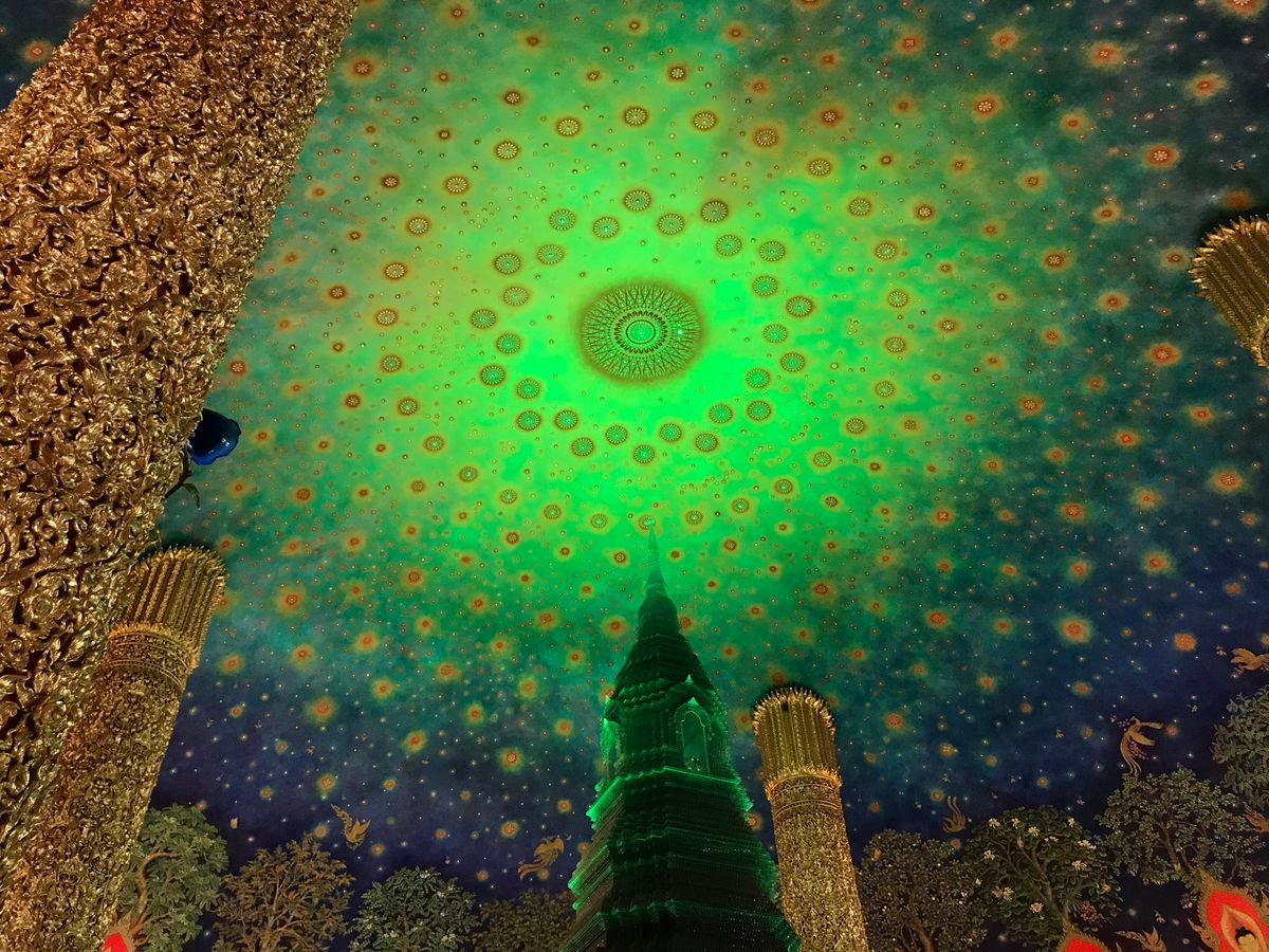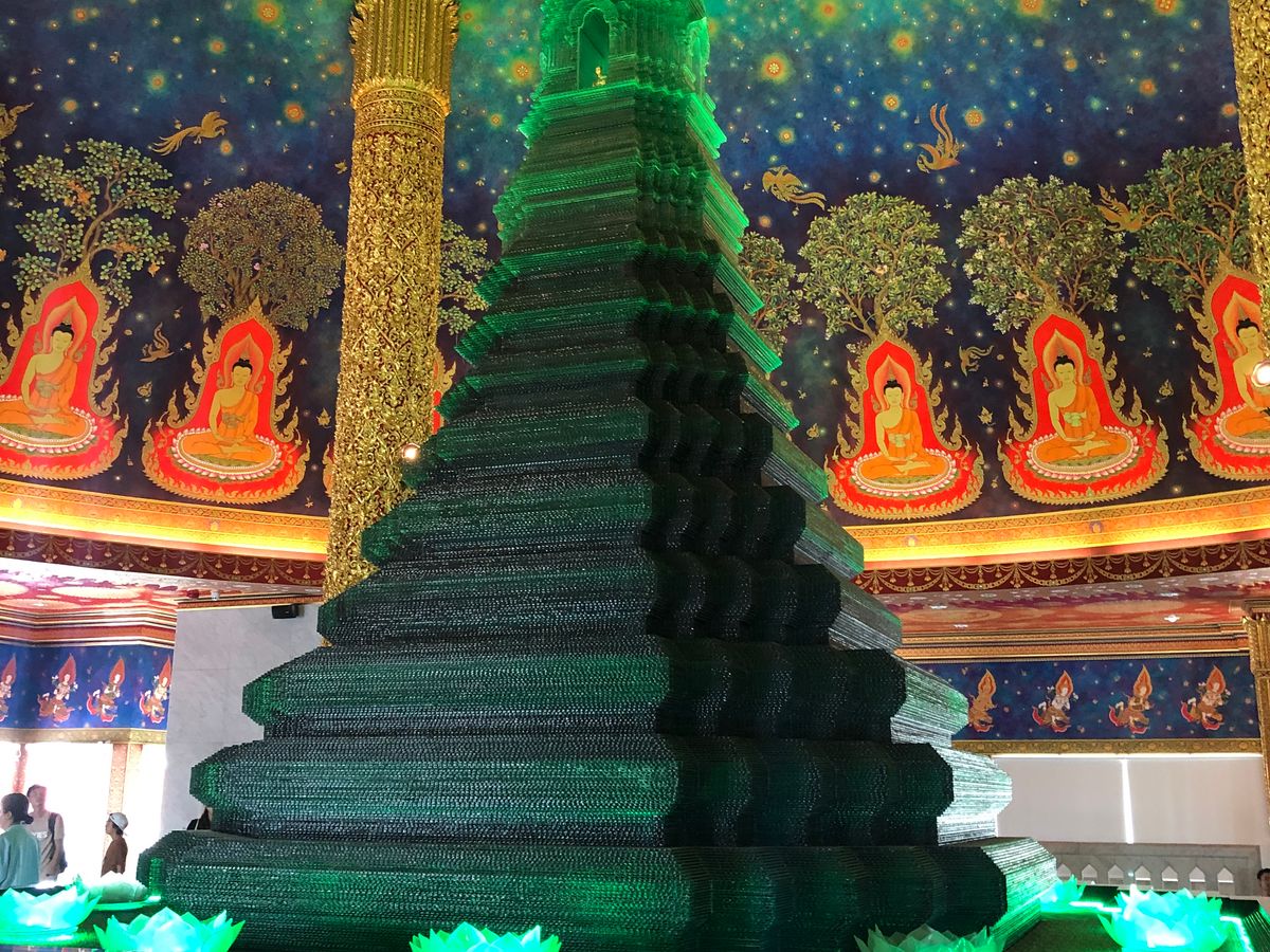 ワットパクナムは、天井がエメラルド色でキラキラしており、見入ってしまいました。あまり人もおらず、ゆっくり見学することができました。