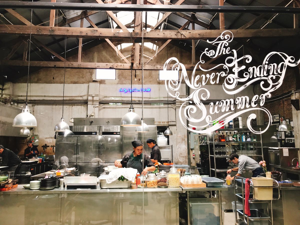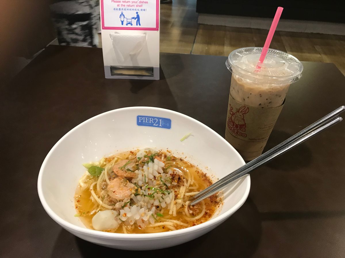 お昼ご飯はネバーエンディングサマー。空調の効いたお洒落な店内で、エビ入りパッタイをおいしくいただいた。