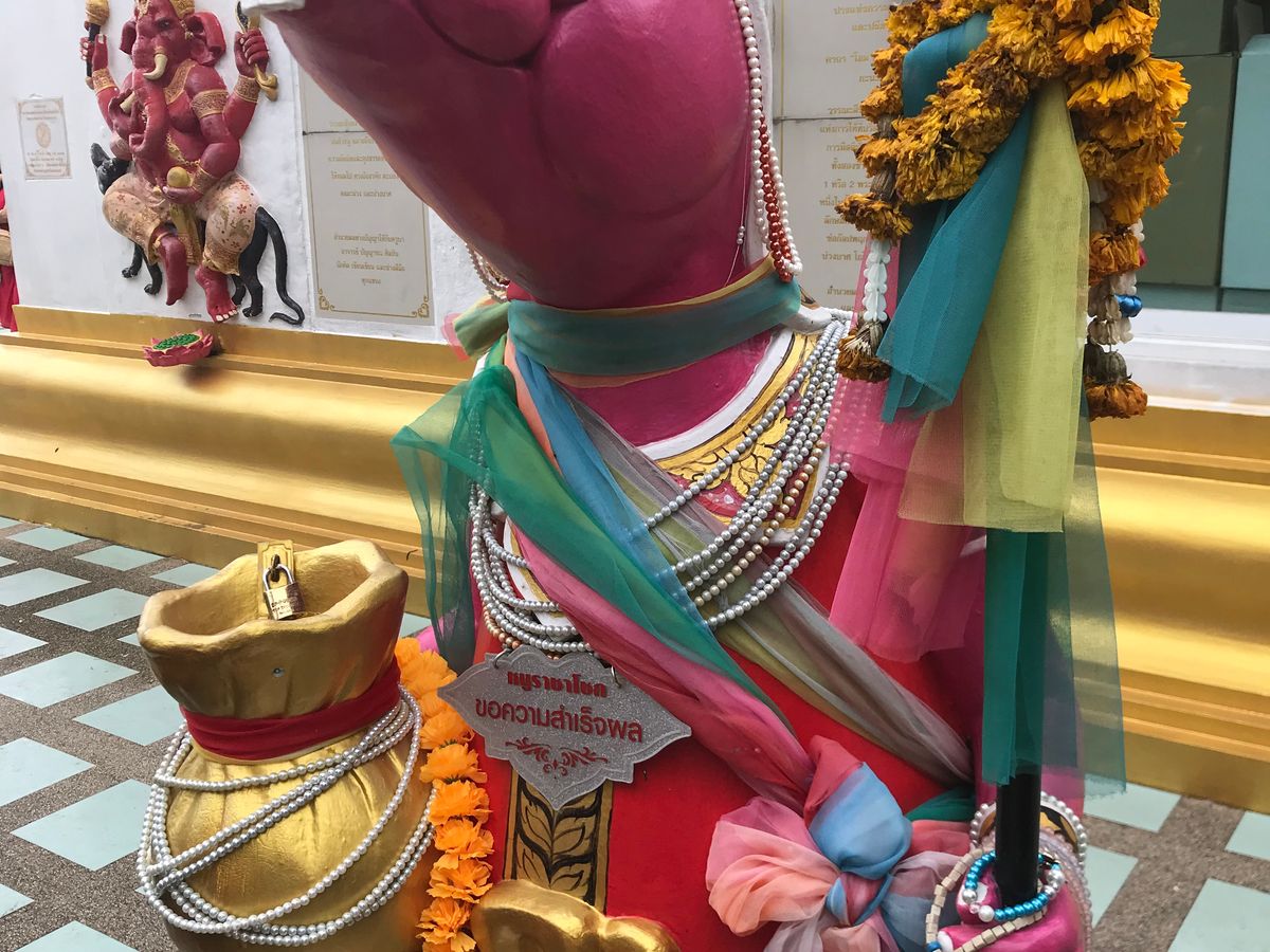 20バーツくらいのお札もっていってガネーシャ前のネズミ像の箱に入れました。