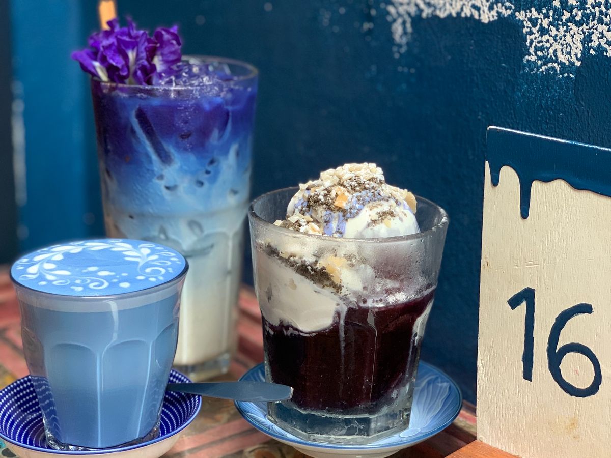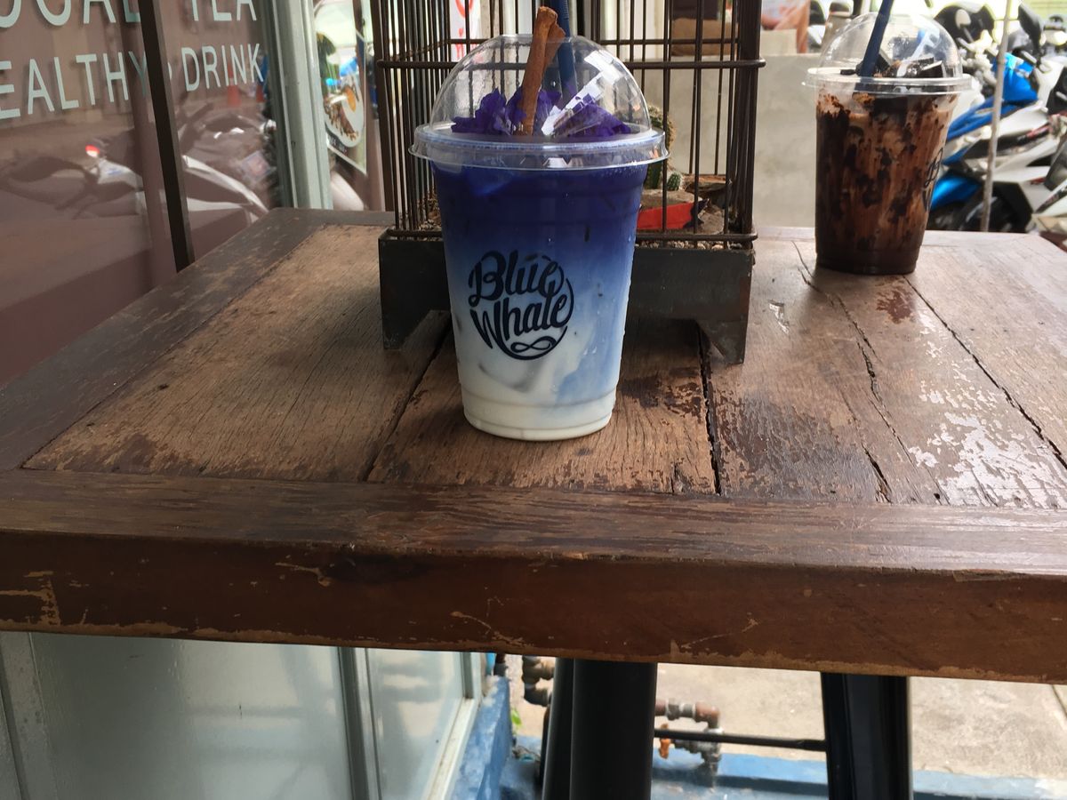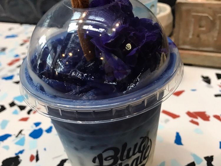 バタフライピーラテは色が本当に青い色で味はクセもなく美味しいかったです。