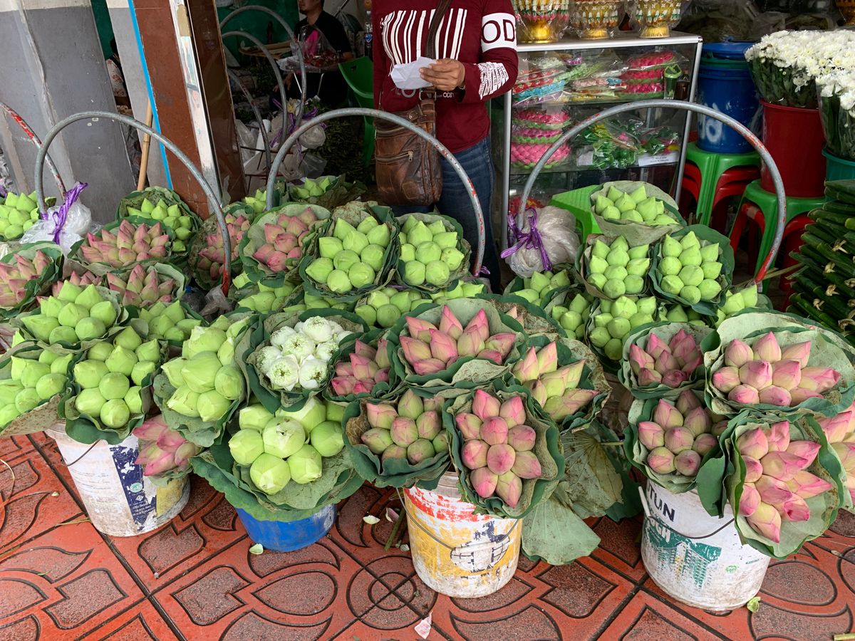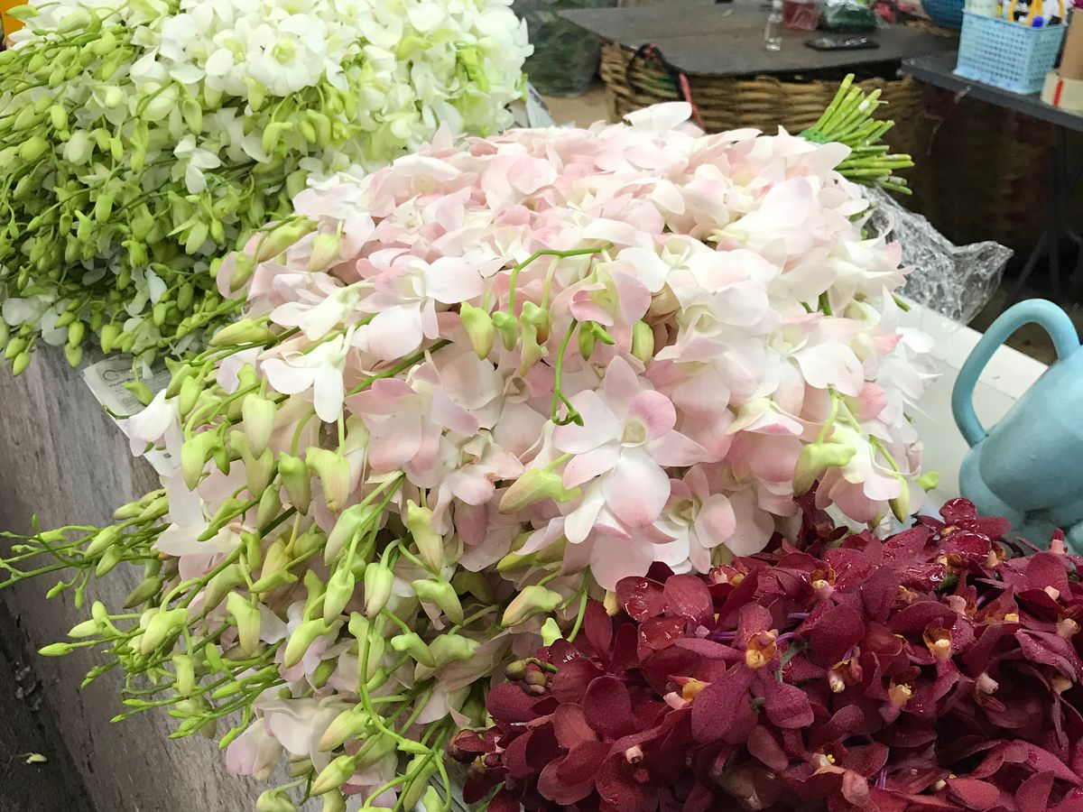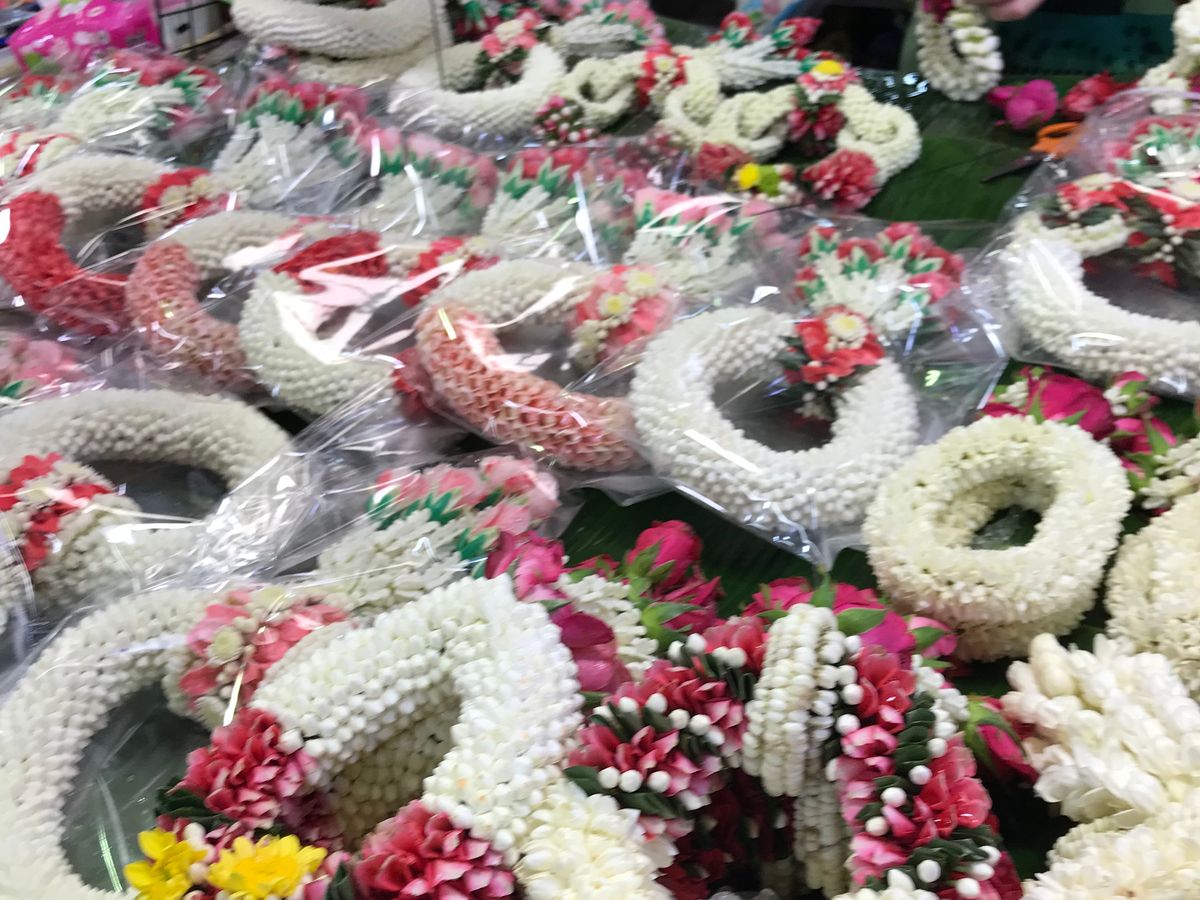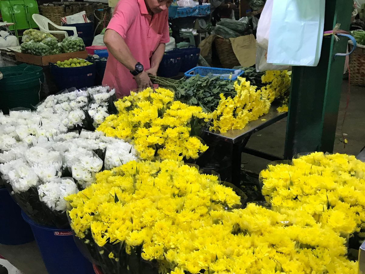 ランチも美味しいでした。花市場は本当にお花だらけで、お供えのお花飾りを作る様子が見られて楽しかったです。蘭や菊、ジャスミンのツボミ、バラが無造作に積み上げられ、南国ならではだなぁと感じました。