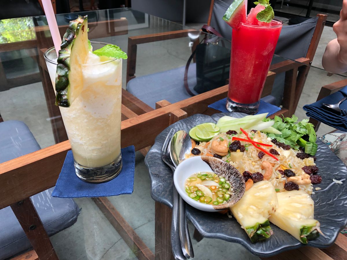 昼食のネバーエンディングサマーは、川沿いのおしゃれなレストランでした。メニューでそれぞれパッタイとパッシーユを選びましたが、どちらも美味しかったです。
