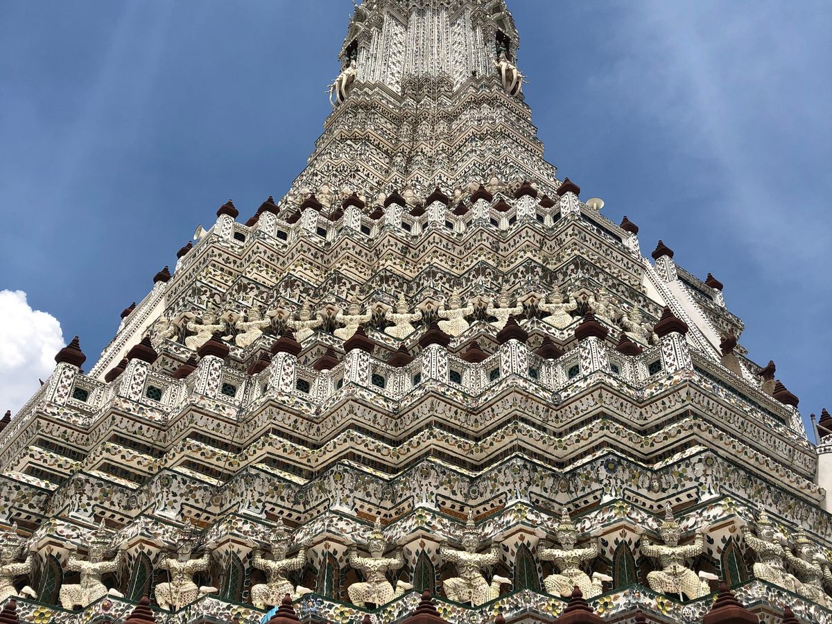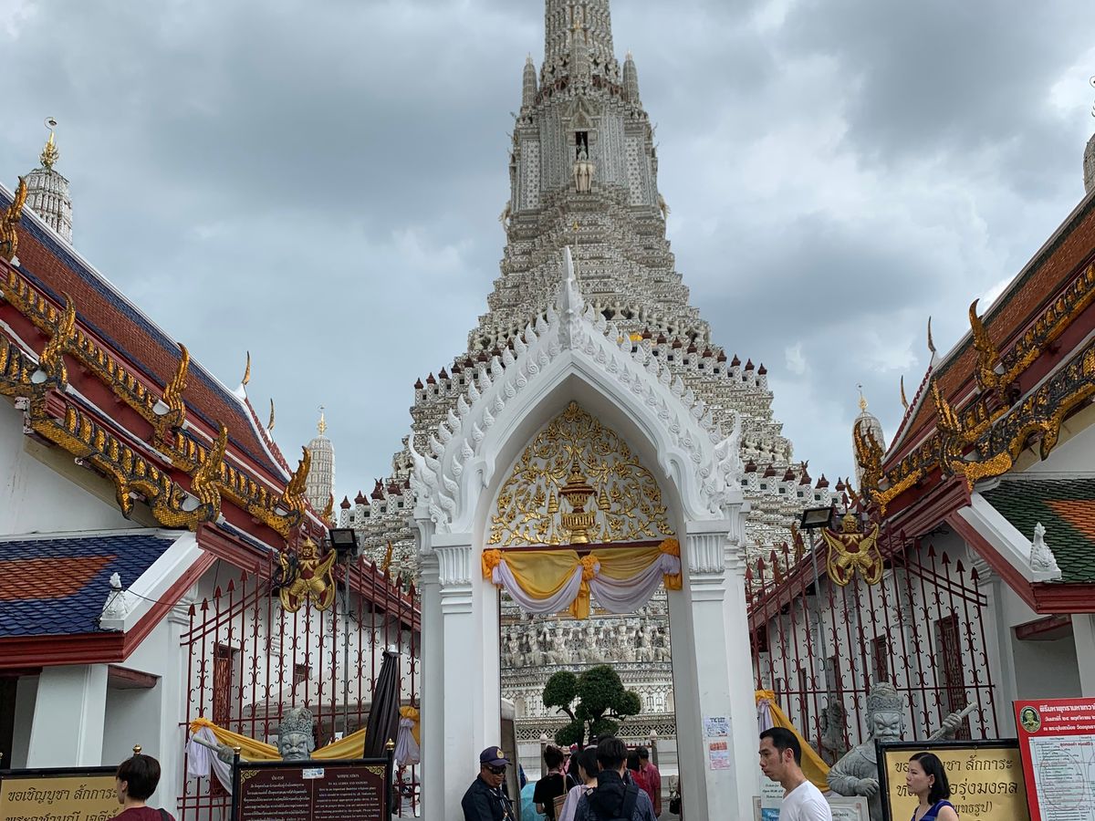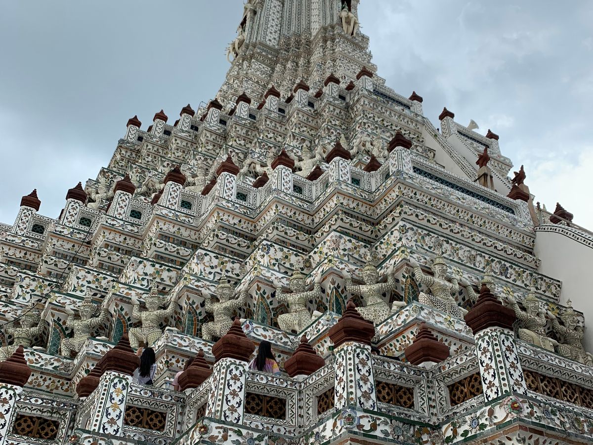 到着した瞬間から、わぁ〜と目の虜でした。凄く綺麗で、こんな素敵なものを作れる昔の人って本当に凄いなと思いました。360度どこから見ても素敵でした。写真をとってもそのまま美しかったです。添乗員さんは説明してくださり、写真戻ってくださいました。地元の女の子もお参りにきていました。沢山写真撮ったら1階ずつ下がり昔飾っていた装飾品など展示物を見ながら車へ戻りました。トイレはペーパーないのでティッシュ持参でお願いしますね!そしてら街に待ったお昼ご飯!!!本当素敵なCafeで美味しパッタイを食べました。少し量が少ない感じでしたが、私はドリンク頼んだので問題ありませんでした。きちんとミネラルウォーターを下さいますので、みんなは頼んでませんでした。次は一緒にいた子達とはプランが別れるとの事で花市場を通り抜け私たち二人は違うバンへ乗り換えました。こちらは貸切でした。次は宮廷でしたが、午後なので暑さと中国人の団体にやられてかなり気分が悪くなる状態。長く見ていられなかったですが、とっても素敵な場所でした。もう少し人がいないとゆっくり見れたかもしれません。そのあとはワットポーを見て写真とりました。近いのですぐ着きました。車では冷たい冷えたおしぼりを下さりほんとに生き返りました。ワットポーをお参りしてから歩いて船乗りばへ向かいました。途中お土産さんもあり、少し見させてもらいました。そして、船にのりワットアルンへ。こちらは私も初めて見るのでとても楽しみでした!しかし突然の雨が降ってきたので写真撮り終えてから雨宿りしました。傘持ってなかったので、やっぱり小さな折りたたみは必須だと思います!!とても満足した一日でした。また是非ベルトラさん使わせてもらいたいと思います。