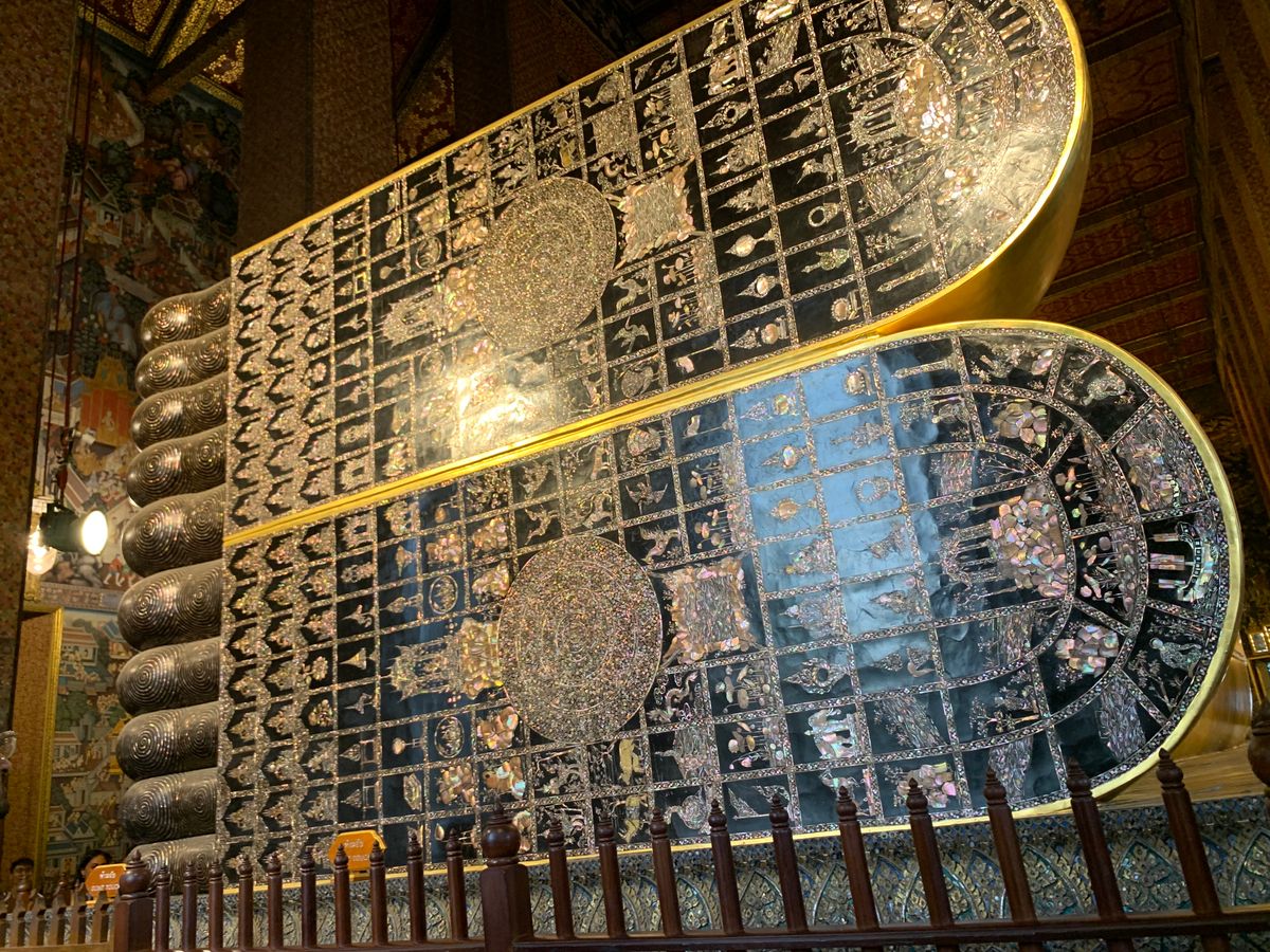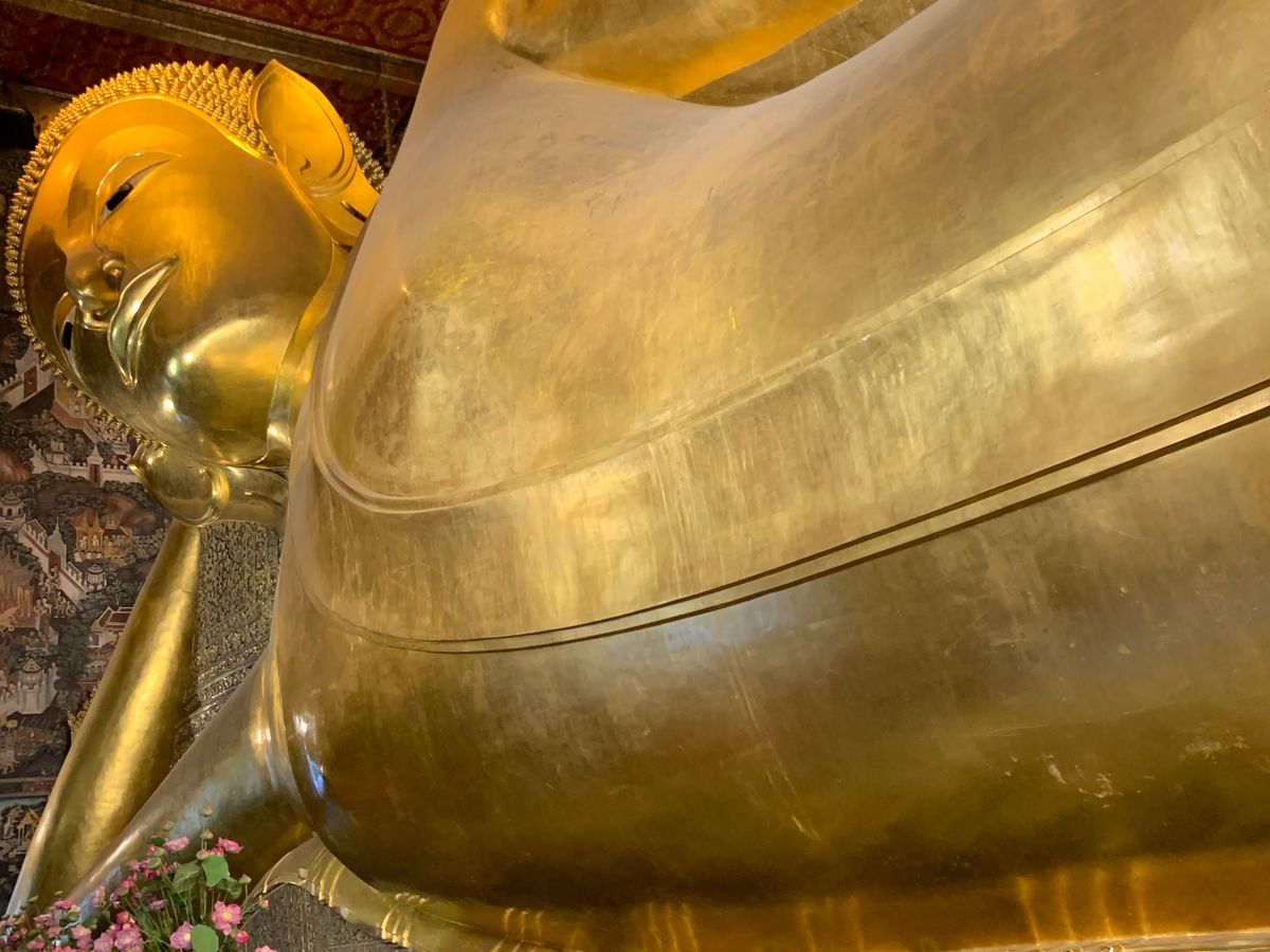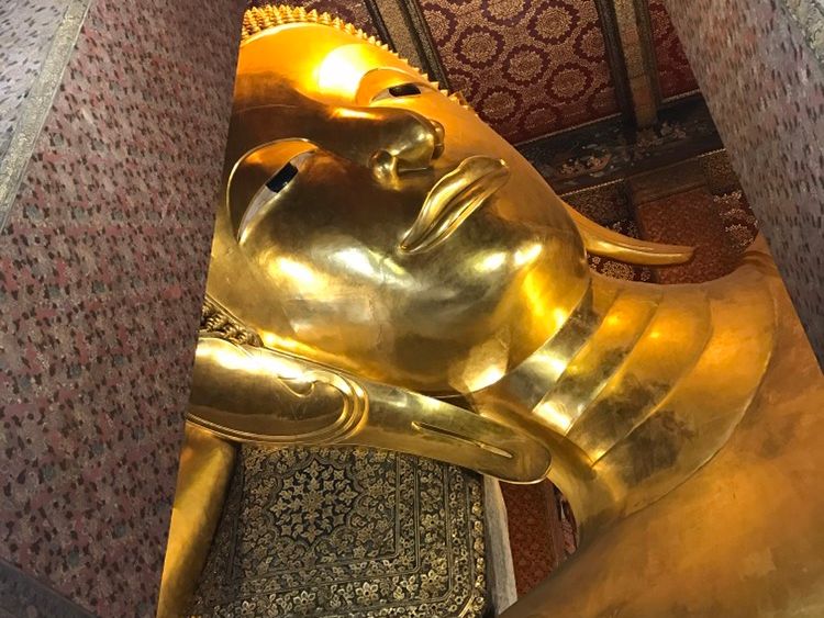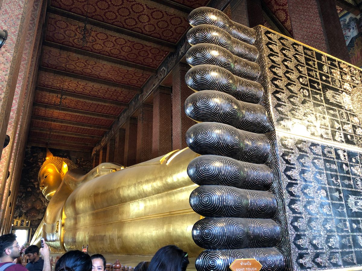 そこから、また船でワット・ポーへ移動。足元から見た体長46メートルの大きく横たわった仏像には圧倒されました。