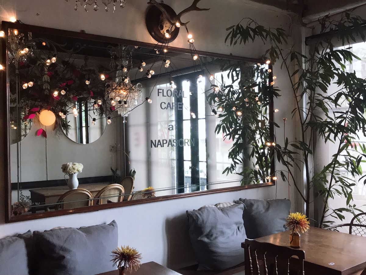 お花さんのカフェはとてもお洒落で西洋人が沢山お茶していました。