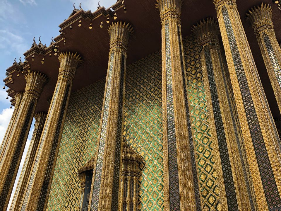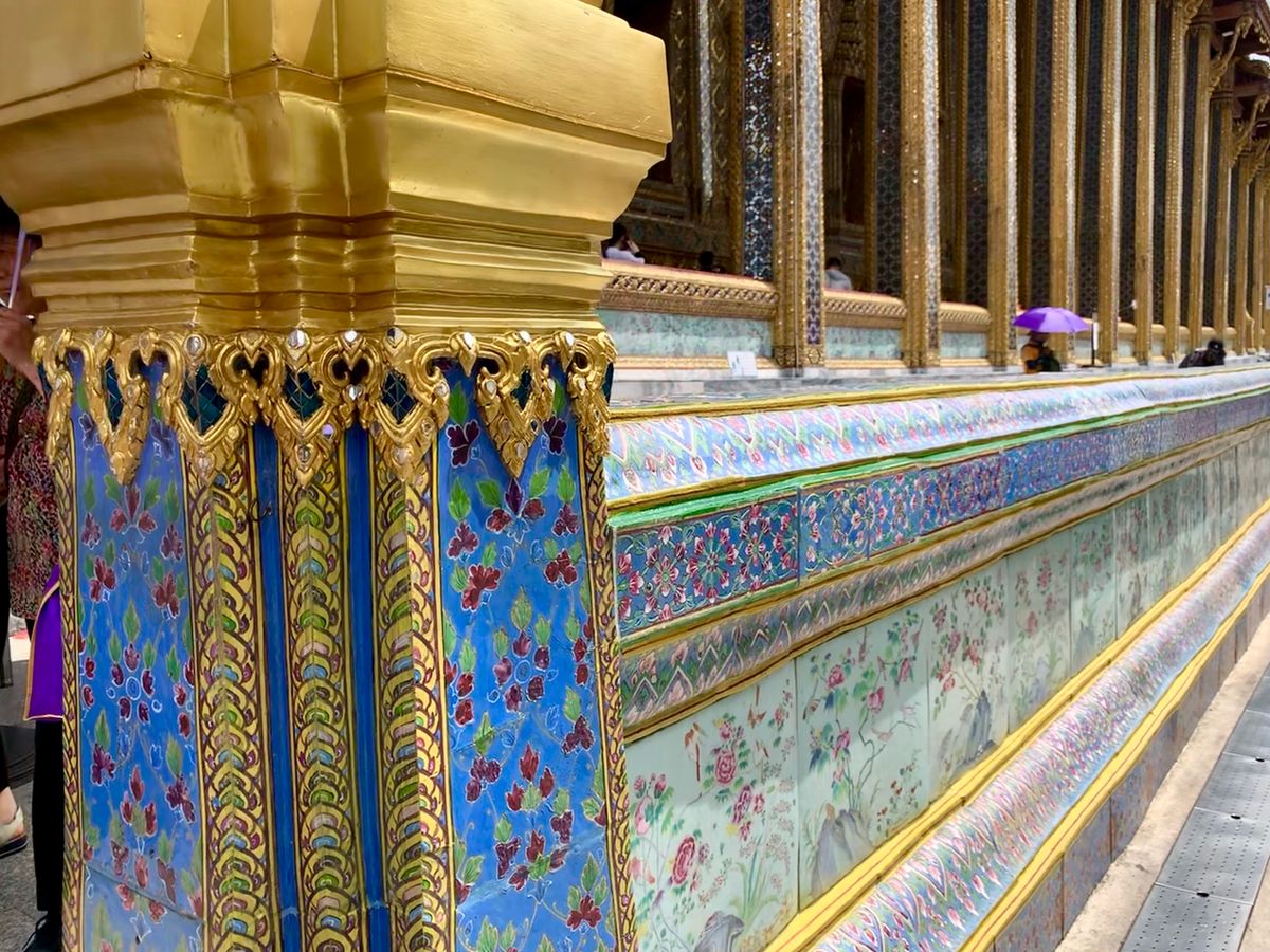 午後の王宮、ワット・アルン、ワット・ポーは暑くて大変でしたが、建物に施されているタイルの絵柄はとても素晴らしい景色を見ることができました。
