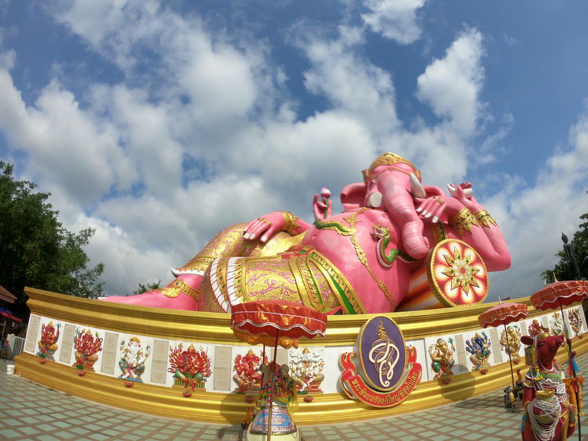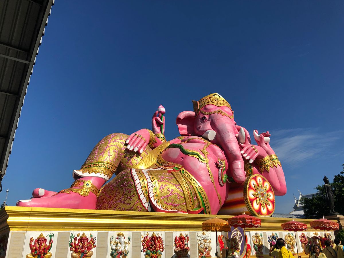 またピンクのガネーシャでは朝から屋台があり、ラーメンやガパオライスが40バーツで食べれますし、インスタ映えな像が沢山有ります。