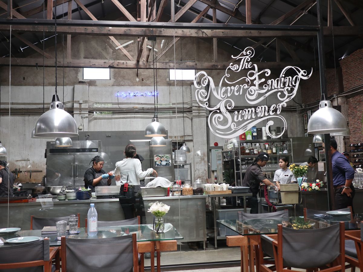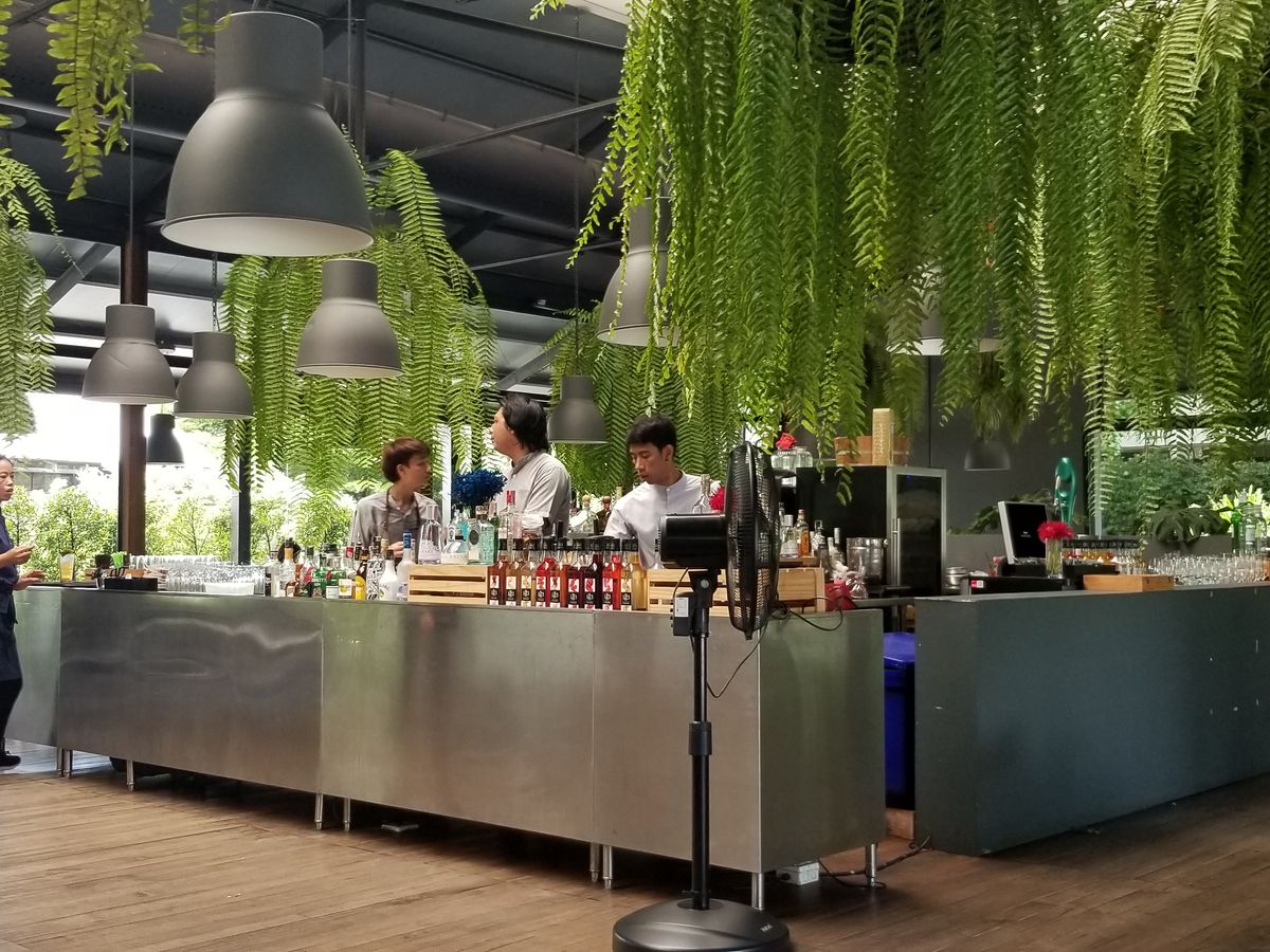素敵な店内で多くのグリーンとオープンキッチンで気分はリゾートです。