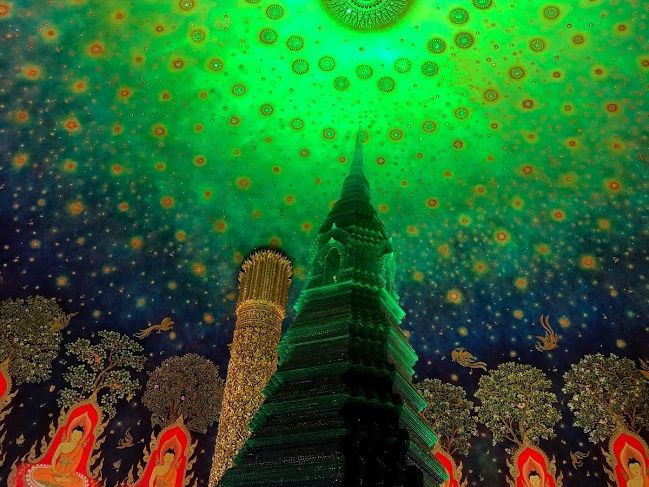 今回はお寺を中心にのパワースポット巡りで特にワット・パクナムの天井に絵かれたエメラルド色をした仏塔は、見ているだけでパワーをもらえそうでした、またランチで行ったレストランはオープンキッチンでとても美しく美味しい料理でした。