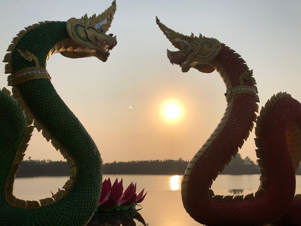 インスタのタイ旅行の投稿でよくみるきれいなピンク像とエメラルドのワットパクナムは実物だと写真の何倍もきれい!ワットパクナムはタイで一番きれいだった!