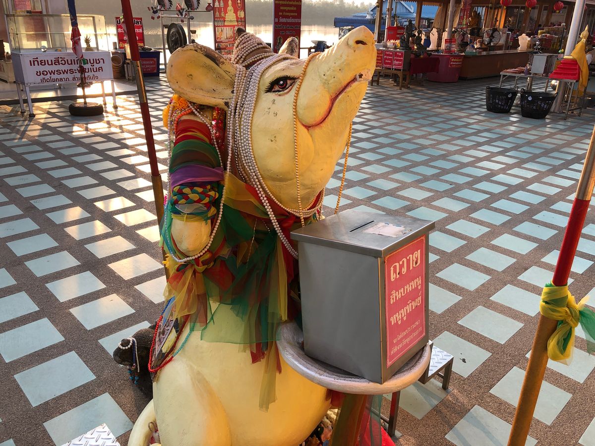 ピンクガネーシャまでは、移動に片道2時間かかります。寝ていればすぐですが、まだかまだかと言っている方もいらっしゃったので、移動時間が苦痛な方はおすすめしません。でも、ピンクガネーシャ自体は本当に大きくて、ネズミに願い事も会えたので良かったです!また、ピンクガネーシャ以外にも、巨大な像が2〜3個あったのでそれも見れます。ピンクガネーシャ関連のお土産は、小さな像(親指サイズぐらい)で800〜600バーツとボールペン25バーツ、ペンダントトップ200〜300バーツぐらいしかなかったのが残念でした。
