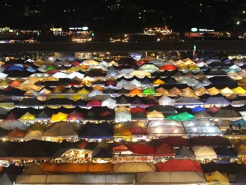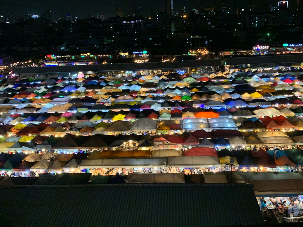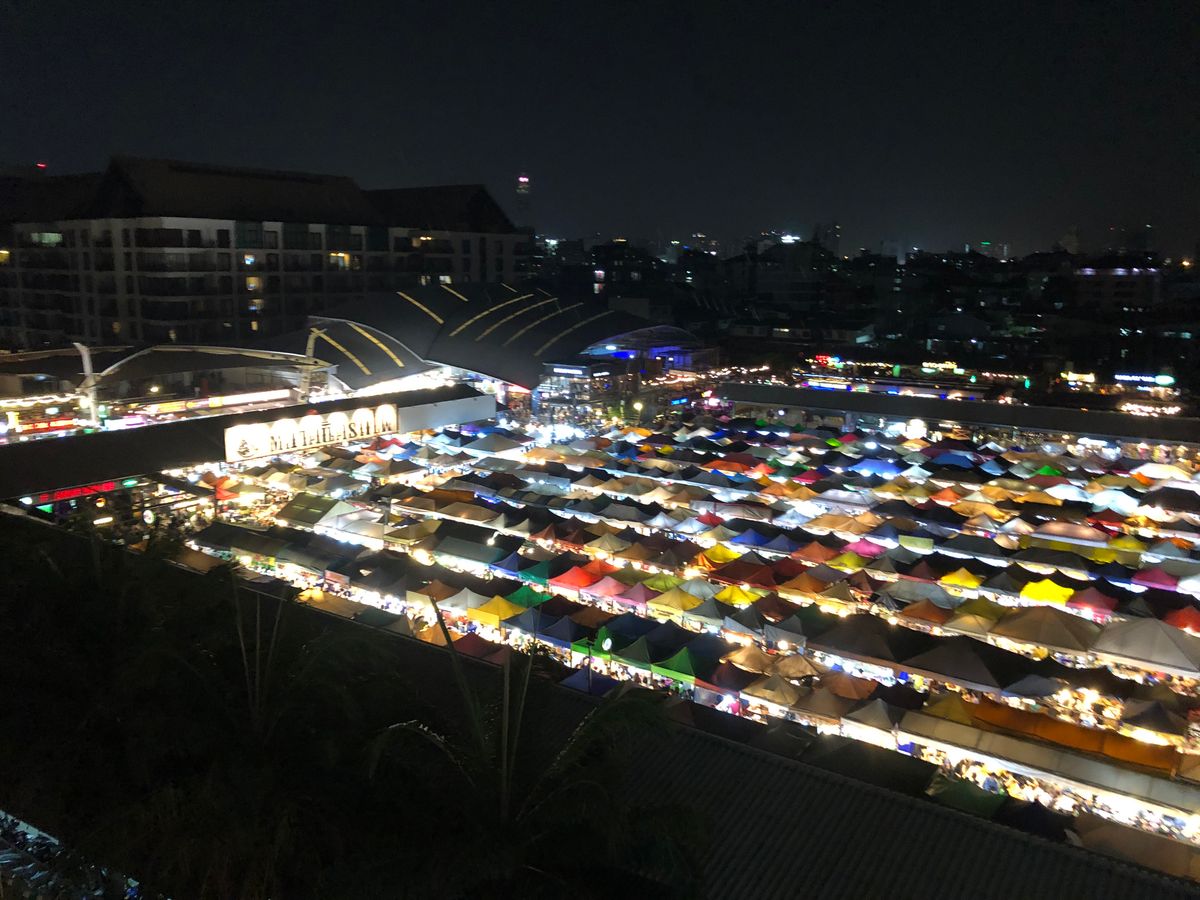 昼から集合。午前中のツアーに参加していたのですが、すでに渋滞が影響して近くのハンバーガーショップで慌てて食事してギリギリに集合。まずは緑の仏塔へ。ここは新しいお寺だそうで、特に歴史等の説明はなく、緑のガラスの仏塔前でSNS映の写真を撮るのみです。次にピンクガネーシャへ。83キロ先で1時間43分かかりました。18:00ごろで日没ギリギリです。ここでもピンクガネーシャをバックに撮影。急ぎバンコクに戻ります。20:40鉄道夜市着。隣接するショッピングセンターパーキングビルから見下ろす写真を撮って夜市を彷徨い屋台で食事。1人50バーツくらいでおいしいタイ料理食べました。最高評価としましたが、移動時間は結構長く遅くなります。自分のニーズとよく合っているか確認することをお勧めします。なお鉄道夜市で解散しますがここからの帰りは激しい渋滞で地下鉄に乗りましたが、券売機が2つしかなく長蛇の列でした。疲れて同行者とケンカにならないようにしましょう。