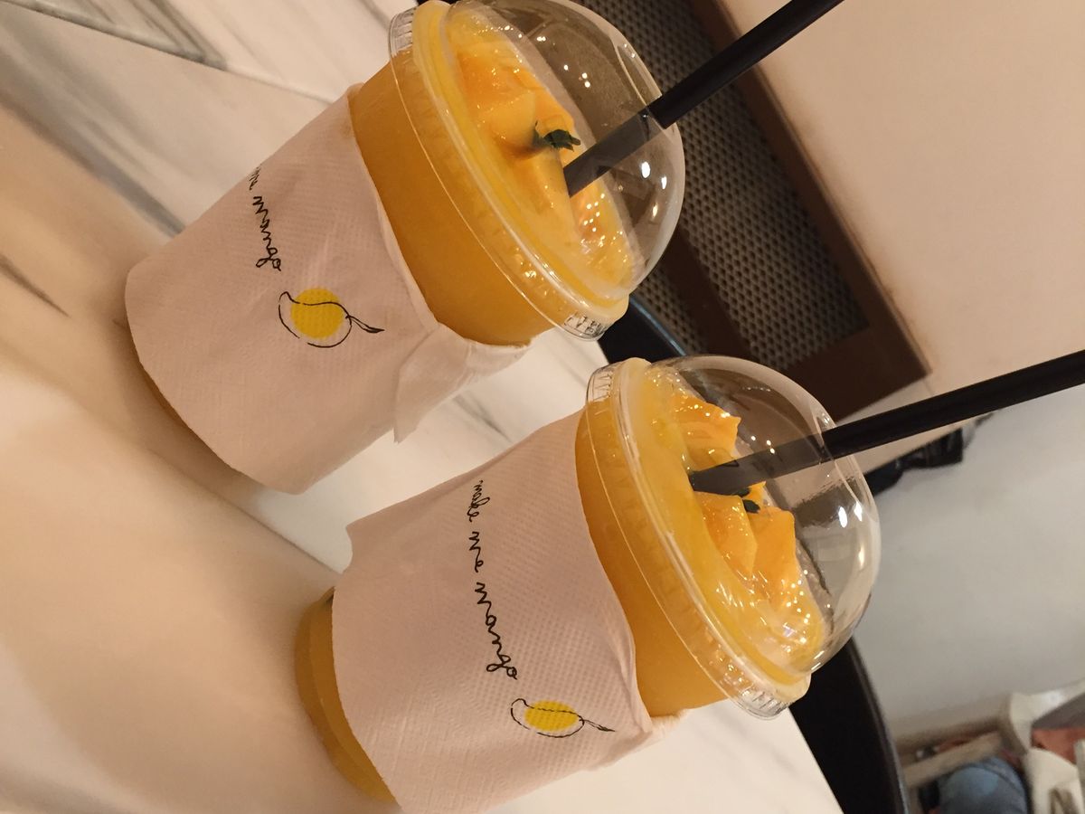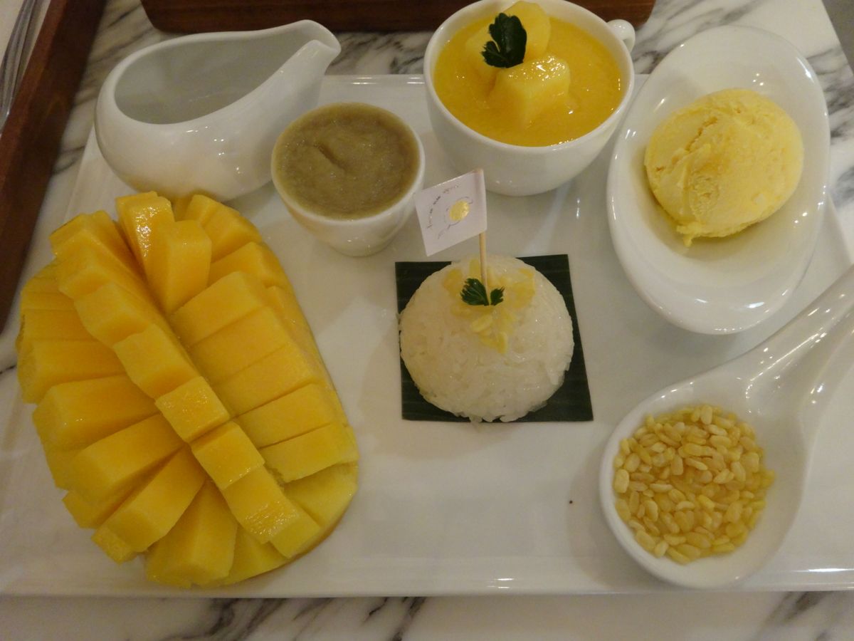 車の移動はクーラーが効いてとても快適でした。ひとたび外に出ると暑くて暑くて汗が止まりませんでしたが、メイクミーマンゴーへ。そこは午前中に行ったワットポーのすぐ近くでした。人気店らしく若い人たちが多くて空いてるテーブルは1つだけでしたが、ソファーにクッションがありとてもリラックスできました。定番のマンゴースムージーをいただきました。甘くて冷たくて美味しかったです。