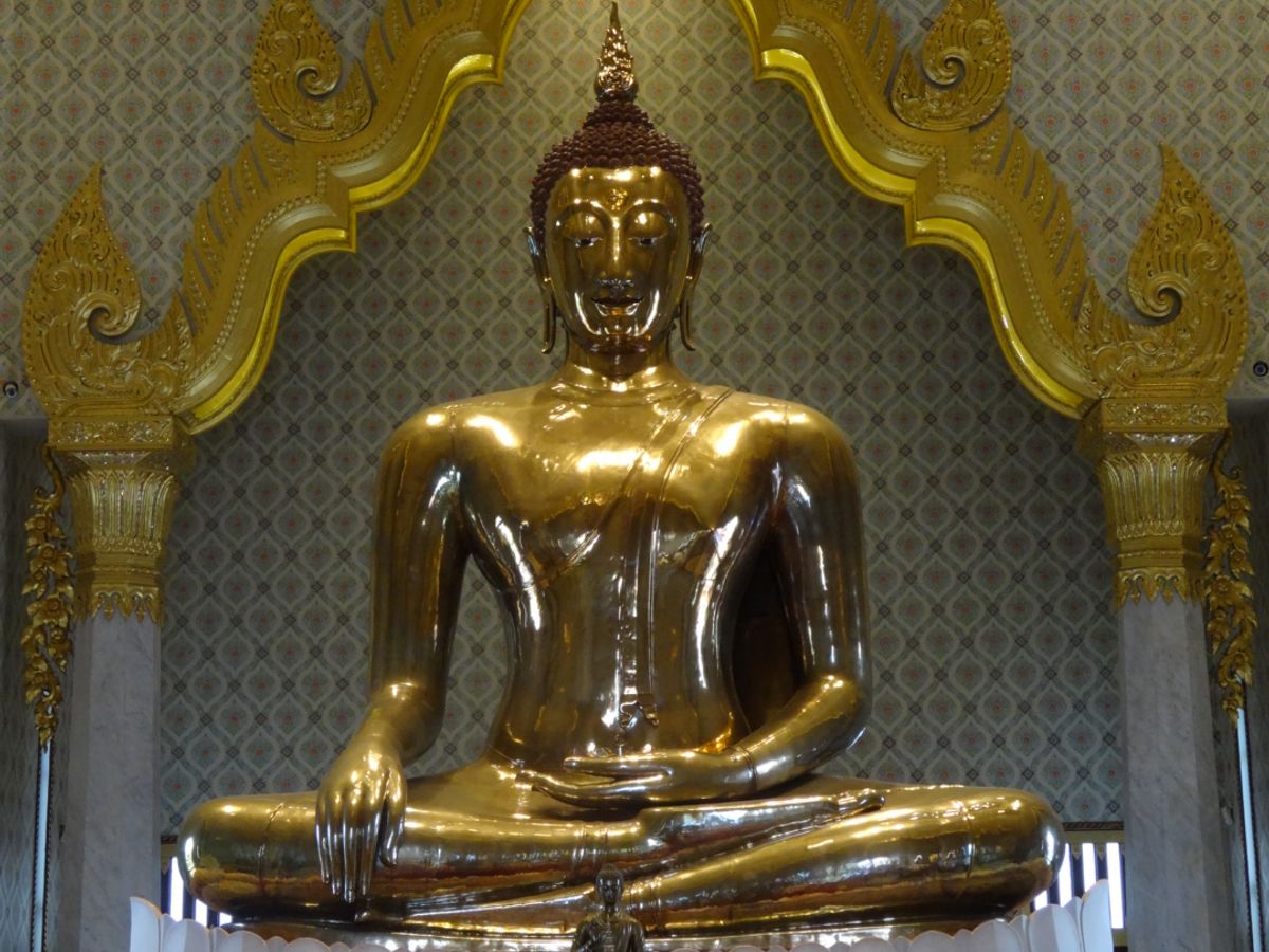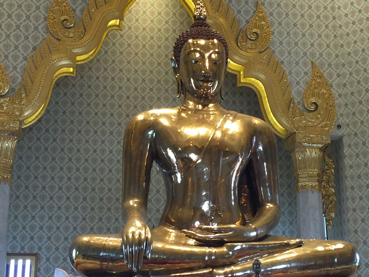 その次はワットトライミット。金で鋳造された座像を見学。ワットパクナムより参拝される観光客が多いのにビックリしました。