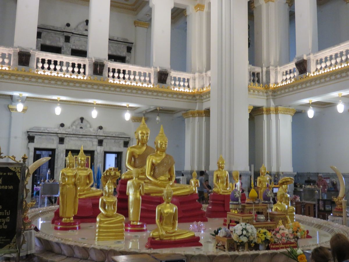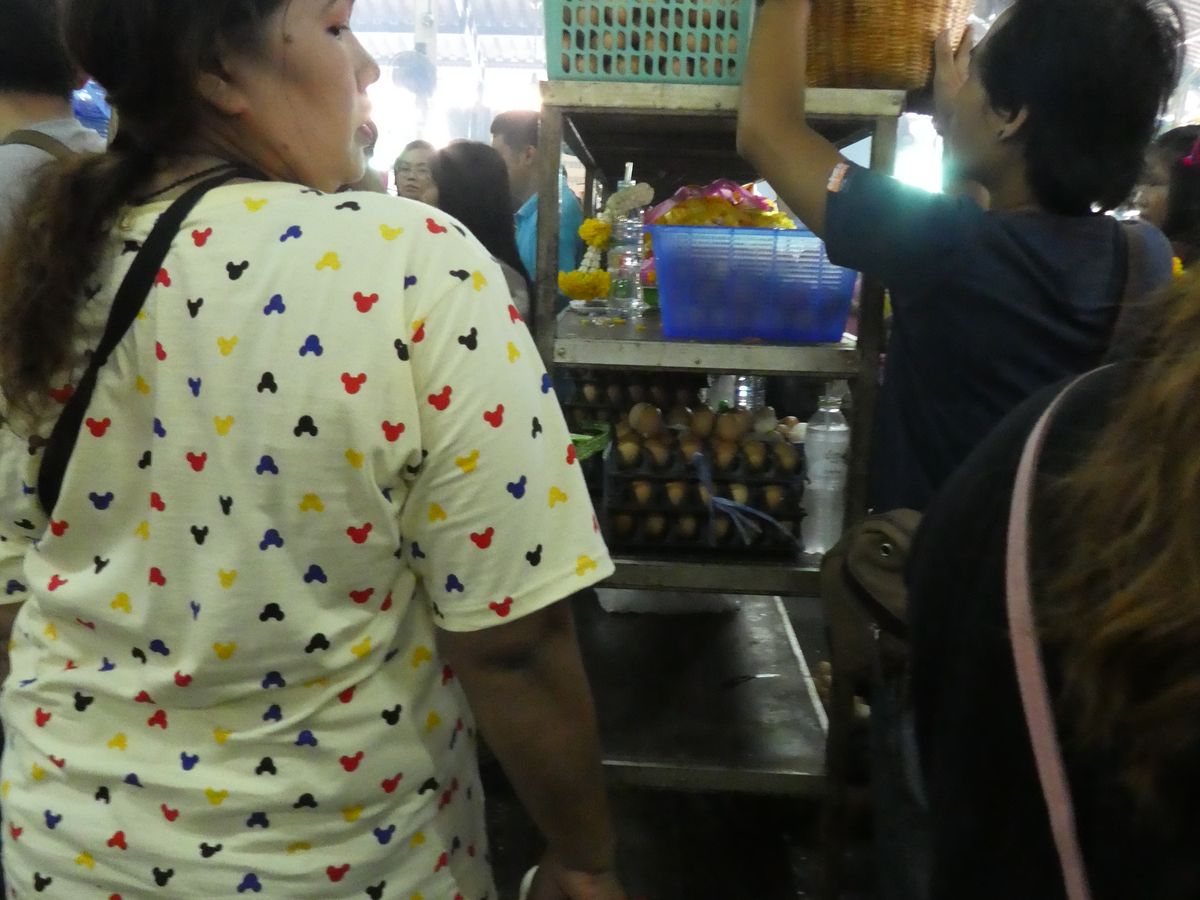 まずはワット・ソートーン寺院 、ガイドさんがひゃっこのゆで卵を持って現地の人はお願いごとに来るところと言われ、100個か8個か、まさか100個どうするの?と思っていましたが本当に100個持ってお参りに来ていました。週末ともあり参拝客で寺院内は人でいっぱい、何とかお参りできた感じです。
