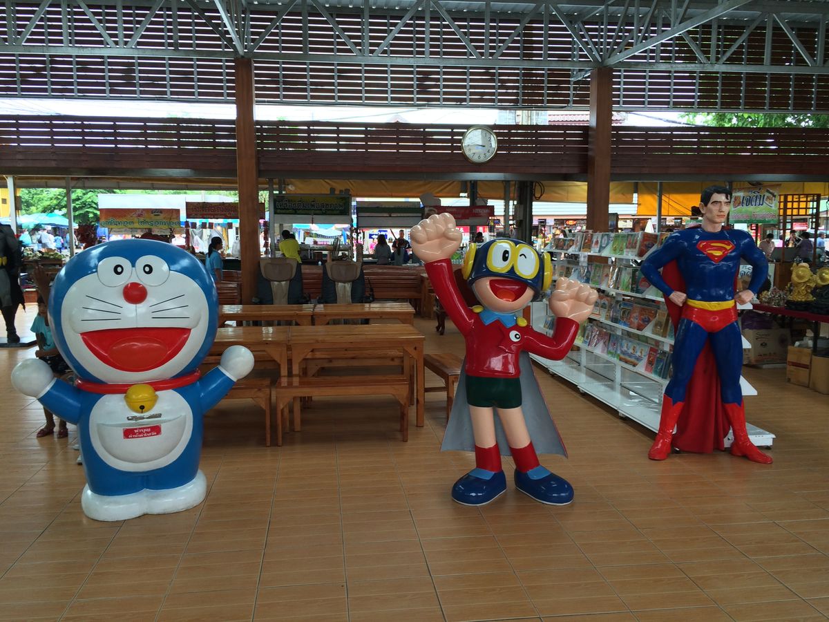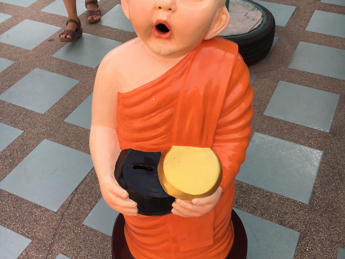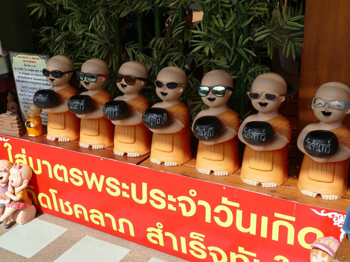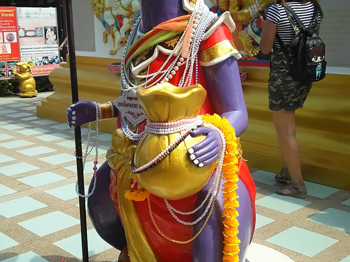 ワットサマーンは、ガネーシャの他にもドラえもん、アラレちゃん、パーマン、スーパーマン、悟空、ミッキーマウスなどいろいろいました。仏教寺院なのにヒンドゥー教のガネーシャがいる理由はよくわかりませんでしたが、僧侶もいらしたのでちゃんとした仏教寺院のようですし、タイ仏教は寛容なのかもしれません。ガネーシャへのお願いは、自分の生まれた曜日の色のネズミにするということでしたので、聞き流されないように?ネズミの片方の耳をしっかり押さえてお願いしてきました。ミッキーマウスもいましたので、一応ミッキーもネズミなのでと思い、片方の耳を押さえてお願いしておきました。