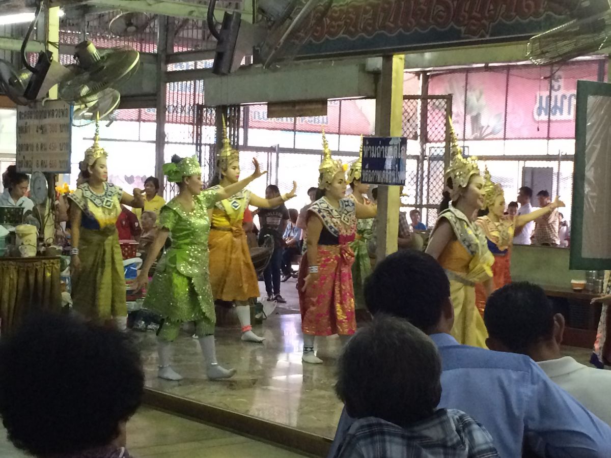 ワットソートーンでは、仏像のほかに奉納の踊りも見ることができてよかったです。肩が開いた服、背中が見える服の方は黄色いガウン?のようなものを借りて着ていました。