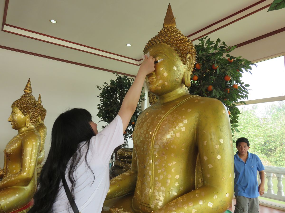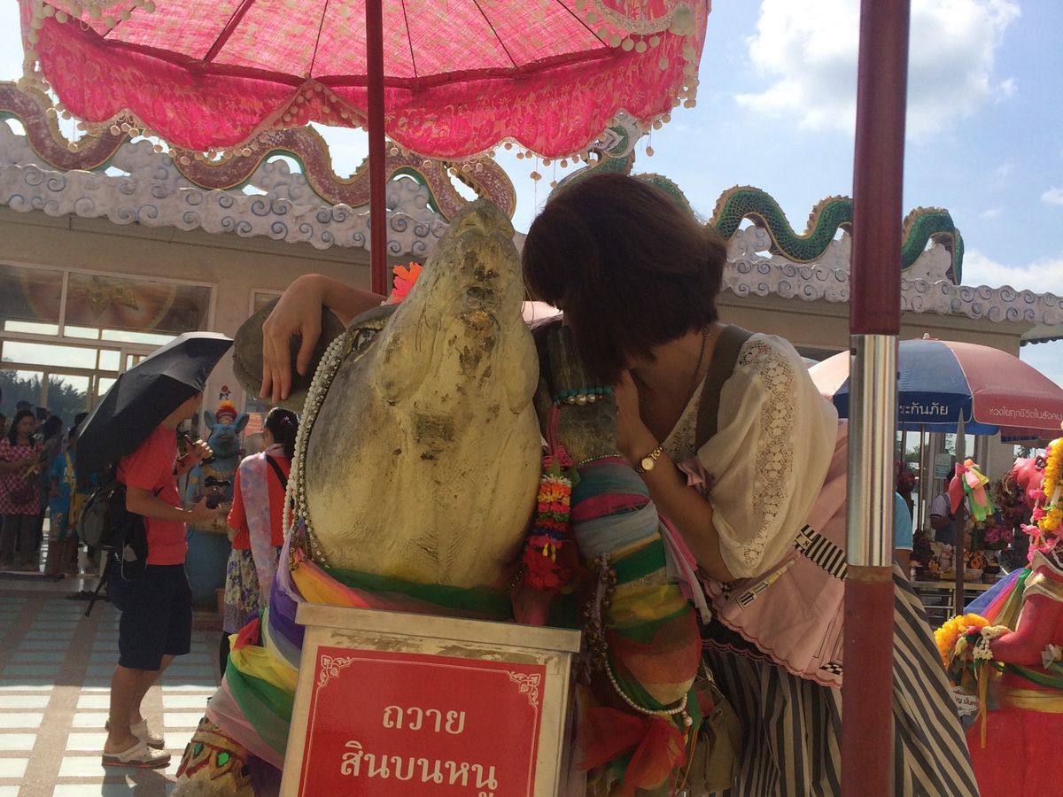 小さなねずみらしき像の耳に、願い事をつげると願い事が叶う。と聞き、私もタイ人に並んでお願いして来ました。