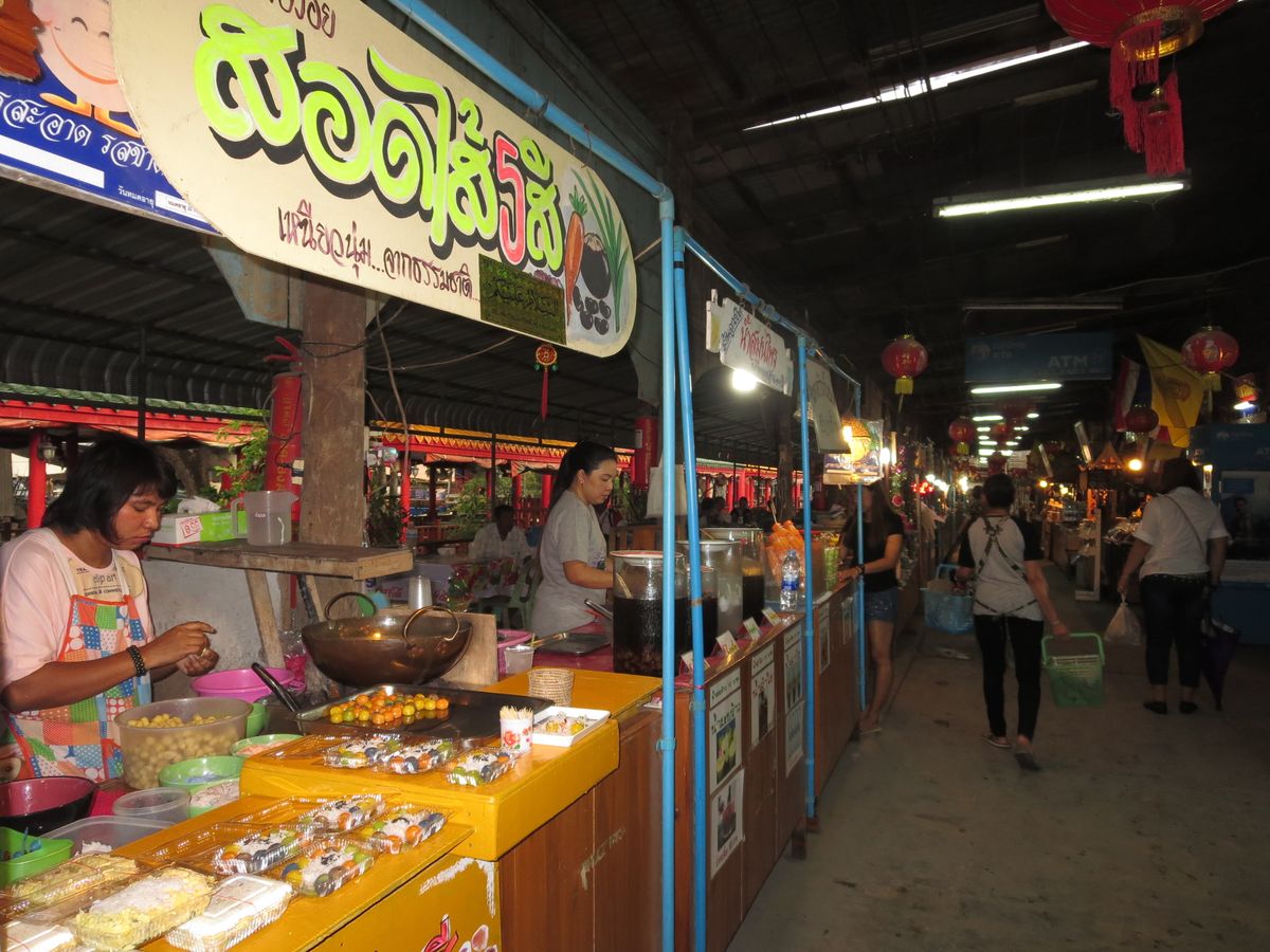 書かれているスケジュールとは逆で、100年市場(クロンスアン市場)→ワットサマーン寺院→ワット・ソートーン寺院の順番で観ました。