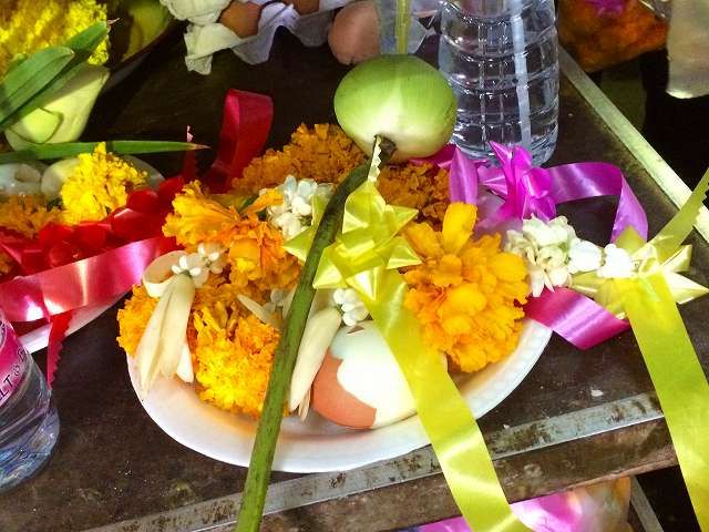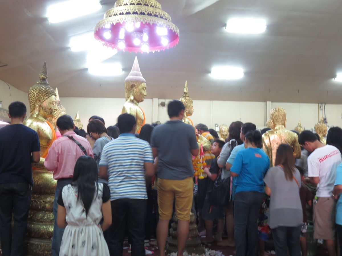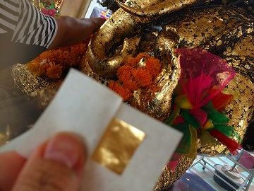 いったん外に出て、「ルアン・ポー・ソートーン」が祀られている部屋でもお祈りや金箔をはりたかったのですが、あまりの人の多さに、断念。入口では、願い事がかなった人向けの奉納舞踊が行われていました。休みなく踊られているということは、それだけ、願い事がかなった人がいるということ。