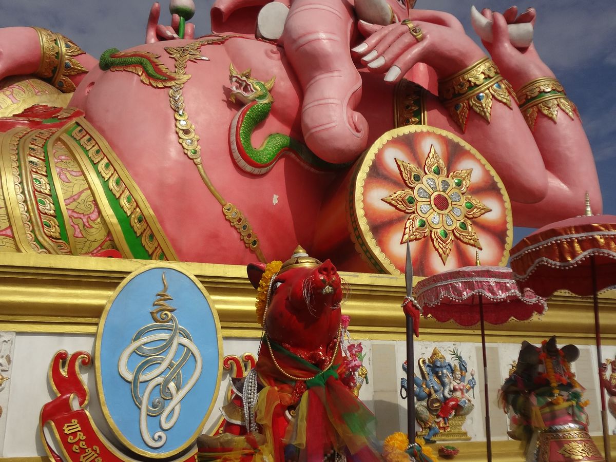 思った以上にデカイです。迫力があります。ピンクガネーシャの周りに色とりどりなネズミがいるので、そのネズミにお願いごとをすれば、ピンクガネーシャに伝えてもらえるそうです。
