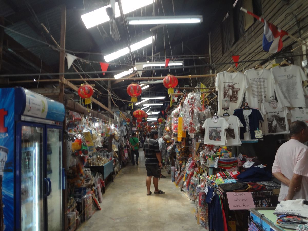 最後に立ち寄ったのが、百年市場。細長い通路の両脇に、日用品や食べ物など、いろいろなものがとても安く売られています。バンコクでみた中で、一番安い市場だったような気がします。結構広いので、端から端までみると結構時間がかかります。当然、日本人の観光客は見当たらず、日本語も通じません。