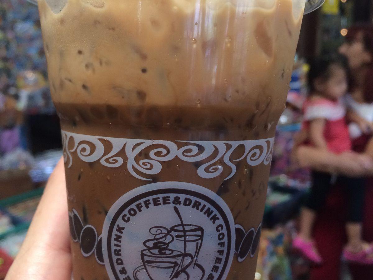 さて次に向かうは百年市場。ここには1番最初にタイでコーヒーショップを始めたという場所があるとガイドさんが教えてくれました。ガイドさんがそこまで案内してくれました。こういう場所で飲んだり食べたりするのが衛生面上不安でしたが、最終日だったので思い切って飲むことにしました。しかし氷が不安だったので、氷なしで、と言うと、氷なしだと甘すぎて美味しくないよ!と言われ、氷は綺麗ですか?と聞いたら、大丈夫!と言われたので、ここでも思い切って氷ありにしました。結果、甘めですがとても美味しく、何だか暑さもスッキリした気になりました。その後体調も大丈夫でしたのでみなさんも是非。因みに私は中国ではアタリ、39度の熱と嘔吐に見舞われましたが、タイは大丈夫でした!