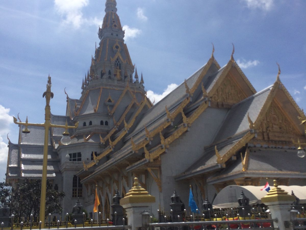 次に向かったのは、寺院としては、世界一といわれる、「ワット・ソートン」。とにかく立派で、迫力があります。中に入って、お祈りすることもできます。床の大理石も、星空が描かれている天井も、とてもきれいです。