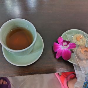 帰国前の午後、ボディマッサージをお願いしました。まずバタフライピーのお茶をいただきながら、特に揉んで欲しいところや触ってほしくないところを日本人の方に聞かれました。