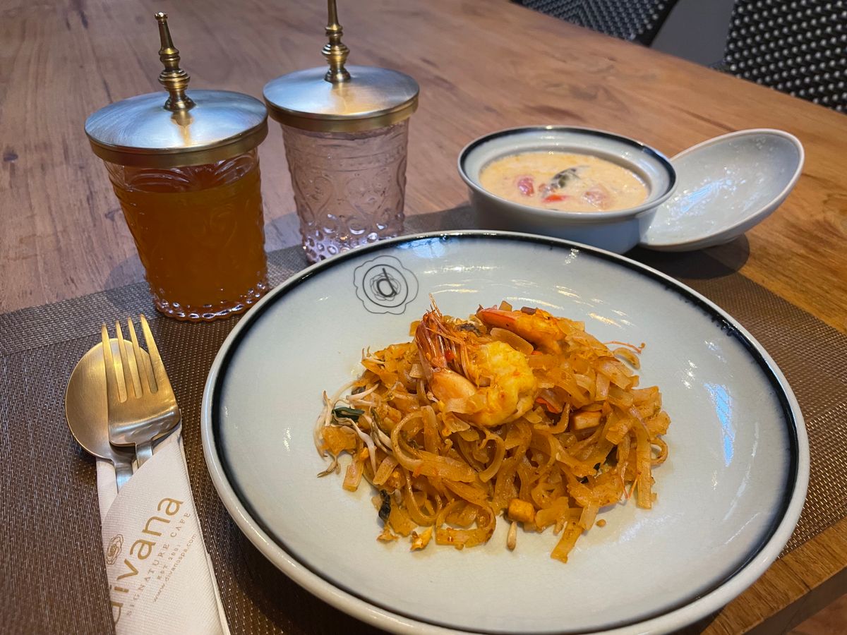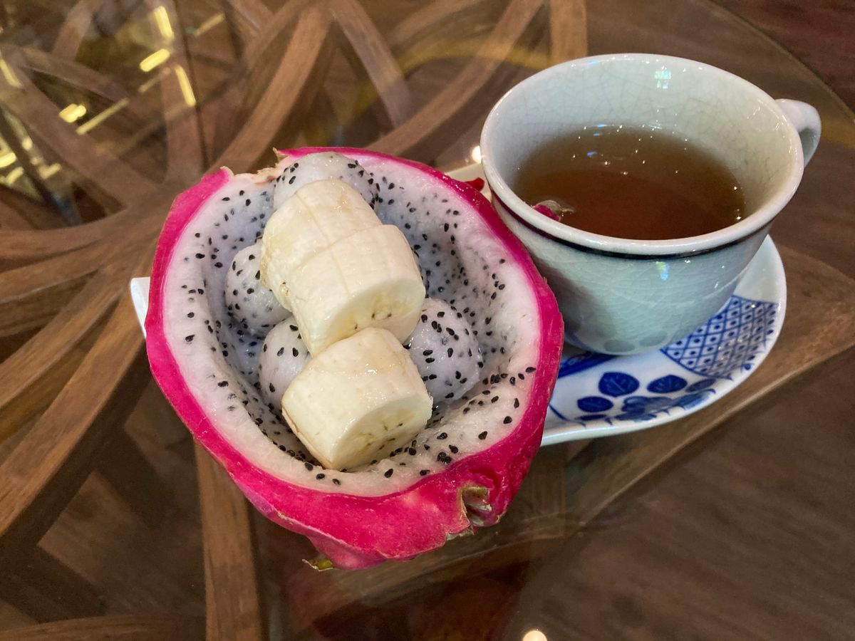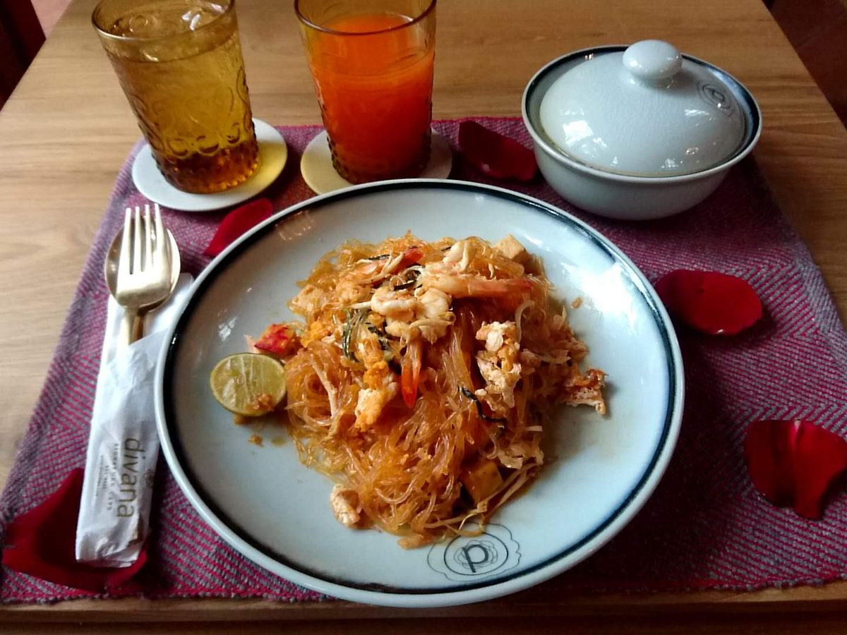 施術中、ヨーグルトがけのバナナとお茶を、施術後は、パッタイとトムカーガイとフルーツ、お茶を出していただき、いずれも美味しくいただきました。