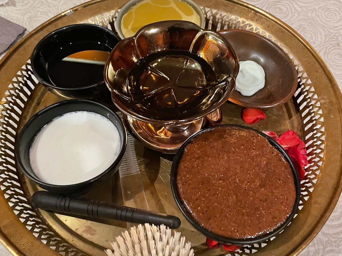 一軒家スパはインテリアも全体的にまとまっていて、ひとつのお部屋内でマッサージや途中の軽食、シャワーやミスト浴、花びらが浮かんだミルクバスまで すべて受けられます。冷房が効きすぎるので、止めていただけるよう何回かお願いしました。