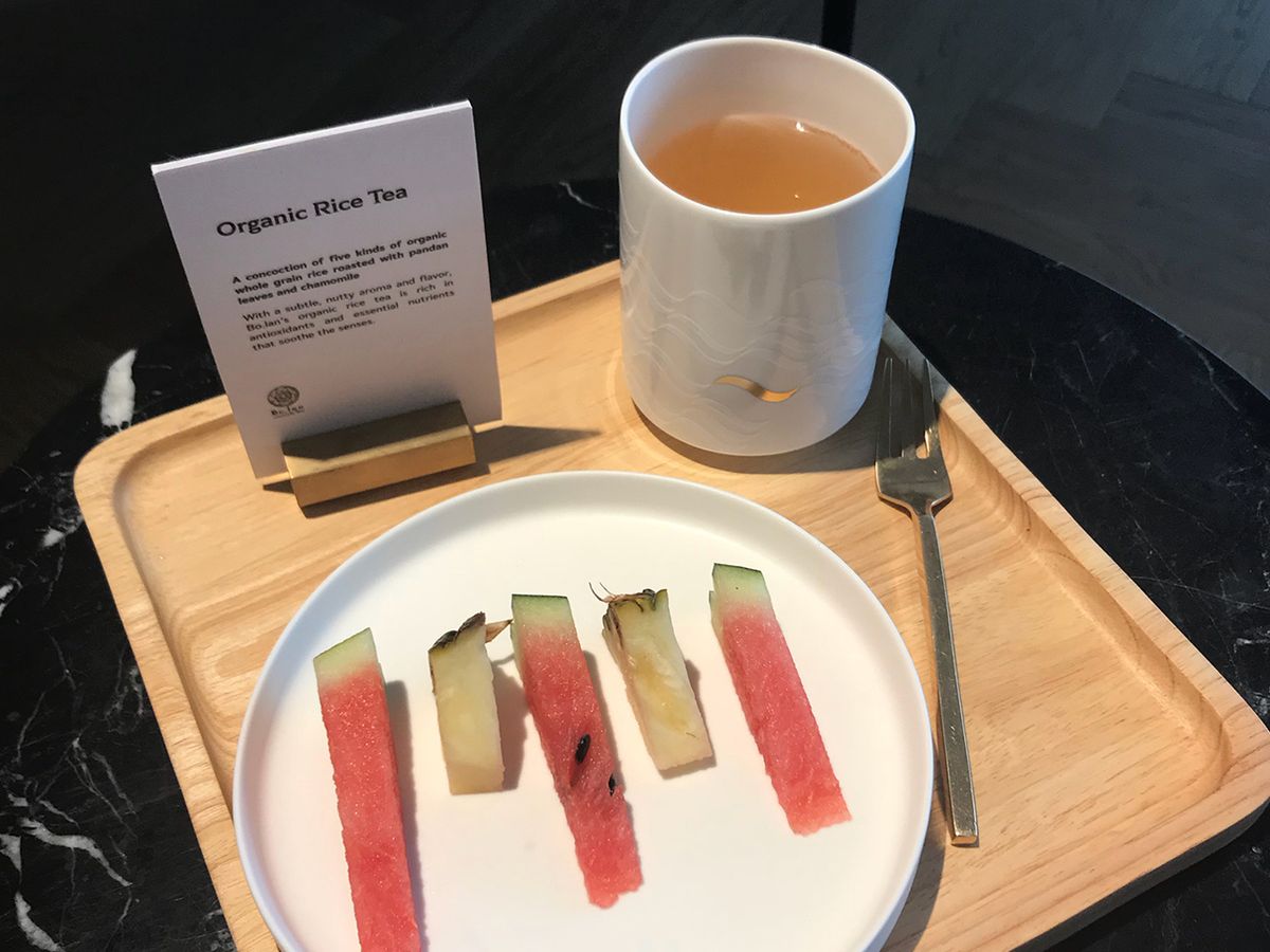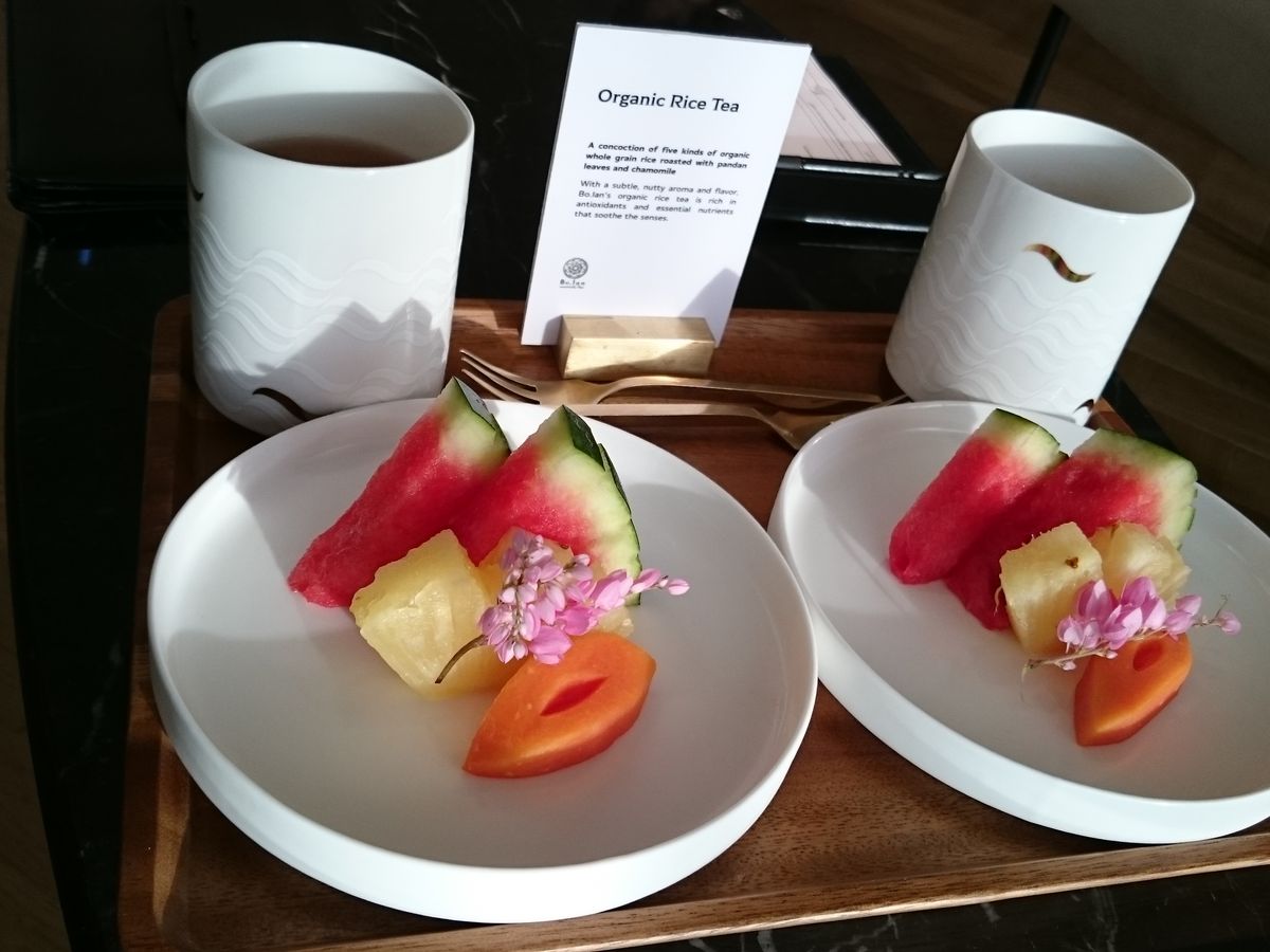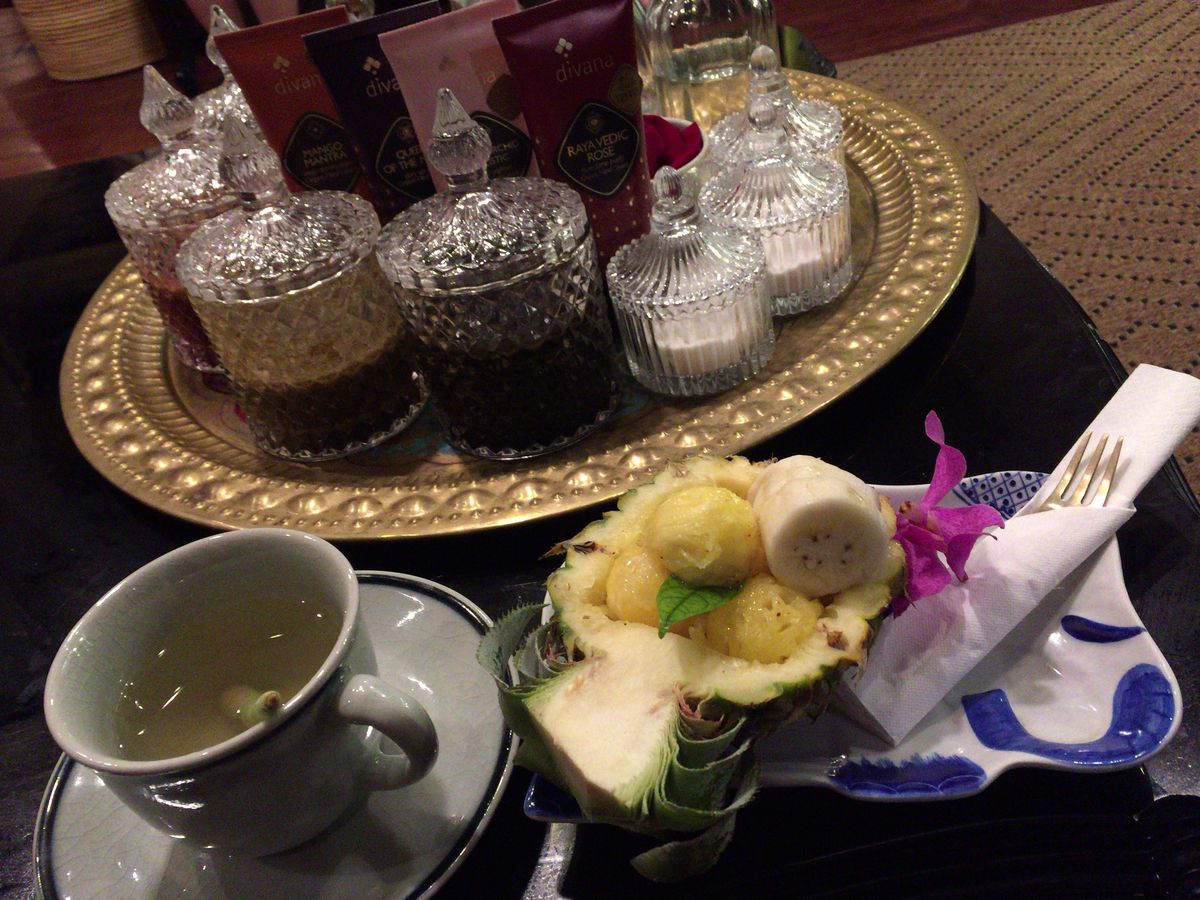 施術後はフロントの待合室に戻って、フルーツとお茶を頂きます。