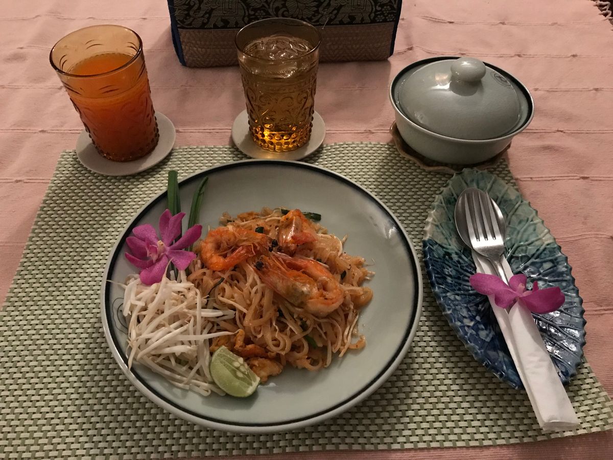 5時間もあるからか、途中でデザートとお茶のセットが出て少しお腹を満たしていたのですが、全て終わってからもしっかりパッタイとチキンカレーとデザートのセットが出て、満腹で帰りました。