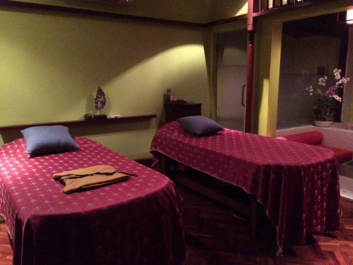 息子(成人です)と二人でタイ古式マッサージのコースを頼みました。2名の施術者がベッドの二つある部屋で同時に施術してくれました。私は体が硬いので心配していたのですが、全く苦痛はなく心地よく、本当に気持ちよく体が伸び、素晴らしかったです。途中で寝てしまったので全部覚えていないのが残念です。施術後はフルーツと暖かいお茶を頂き、ゆっくりすることもできました。またいつか行きたいと思います。