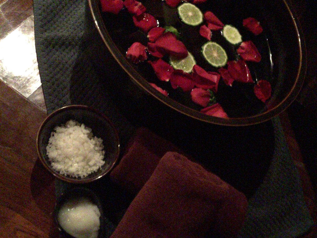 長時間の施術で飽きないかと心配しましたが杞憂でした。途中スイーツや花びらのお風呂、最後には美味しい軽食までついてこのお値段は信じられません。