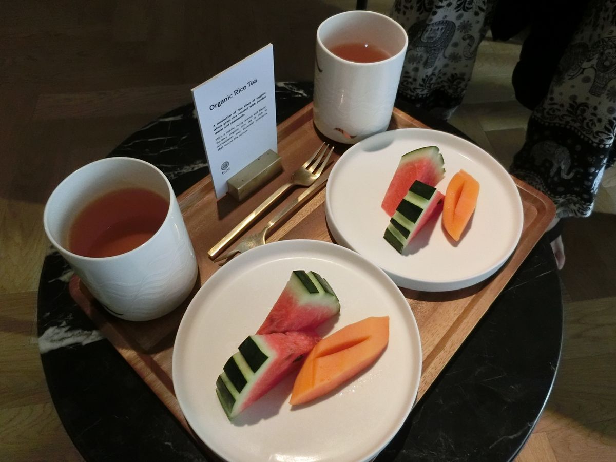 最後もフルーツとオーガニックお茶を頂きました