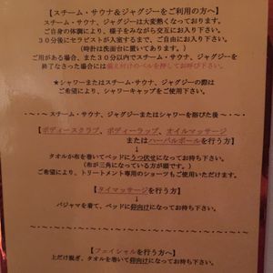 今回3時間コースでしたがマッサージが3時間ではなくお風呂の時間が30分あり、マッサージは2時間30分でした。施設的には狭くこのプライスでこのマッサージでは可でも不可でもなく普通です。