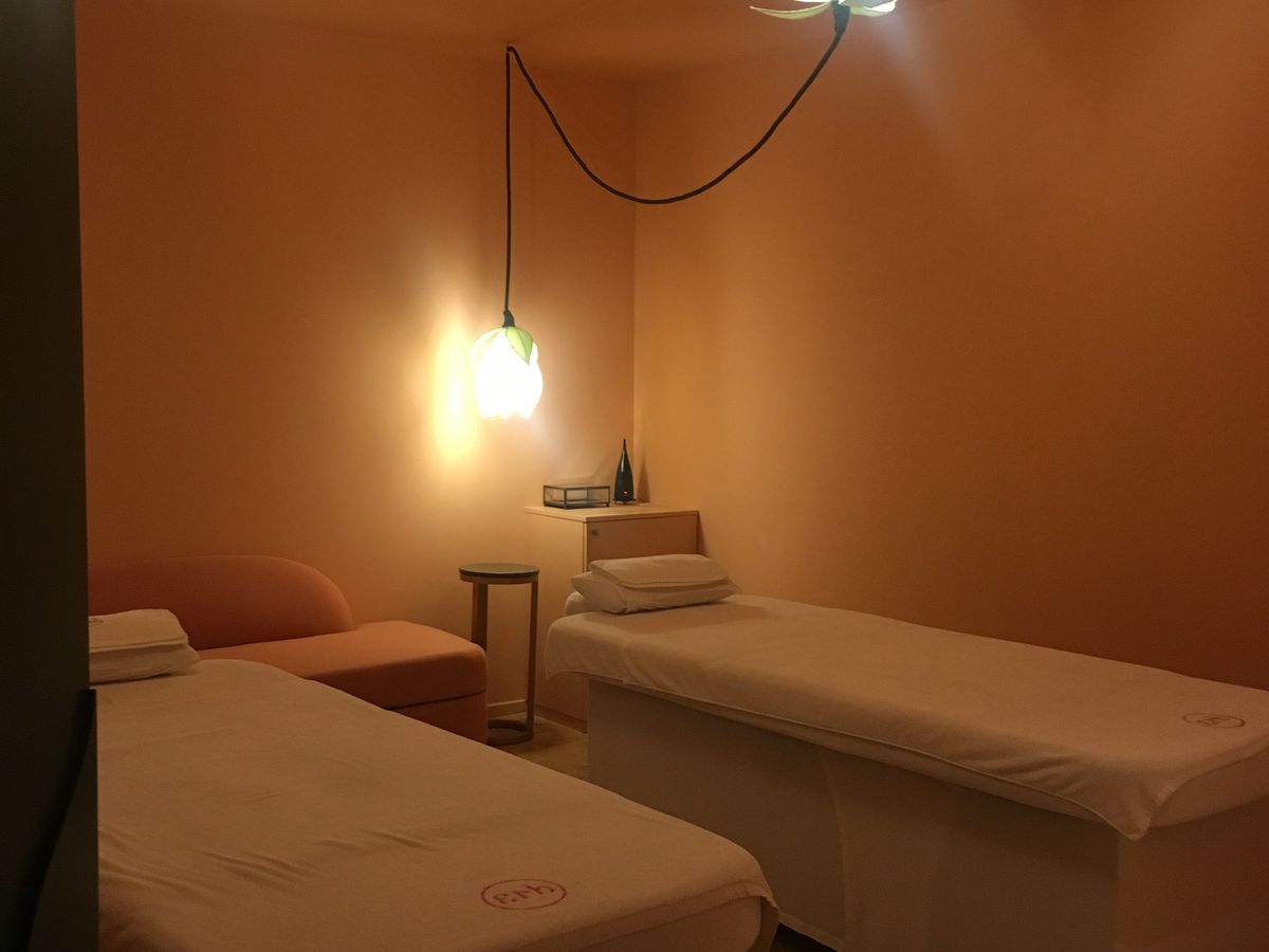 モニターでカップルで体験しました。フット、ボディマッサージ、フェイシャル3時間のコースでした。口コミにあった通り、12M行きのエレベーターを見つけられず、ハーンのショップでSPAへの行き方を聞き、エレベーターまで案内してもらいました。着くと、予約の有無を聞かれ、トイレは外にしかないといわれました。待合室に案内され、質問票に記入(2人ともマッサージの強さはミディアムを選びました)し、お茶のサービス。好みのオイルとスクラブをサンプルから選びます。予約までに時間があったので、スタッフの方が色々とハーン製品について英語で説明してくださいました。2つベッドが置いてあるバスタブのある部屋に案内され、備え付けのショーツのみで上にガウンを着て、フットケア。その後、2人のうち1人がバスタブで入浴。シャワーを浴び、新しいショーツに着替え、スクラブマッサージ。入浴していない1人はここで入浴タイム。シャワーを再度浴び、ボディマッサージ。ちょうどいい強さでした。最後にフェイシャルで終了。シャワーを浴びない方がいいと言われたのですが、髪の毛がベトついていたので、髪だけ洗いました。シャワー室にはシャンプー、コンディショナー、ボディシャンプーがあり、もちろんハーン製品!3時間でしたが、あっという間に時間がたっていました。日本では体験できない、ハーンでのSPA。極上癒し旅にはぴったりでした。次回また来たいです。