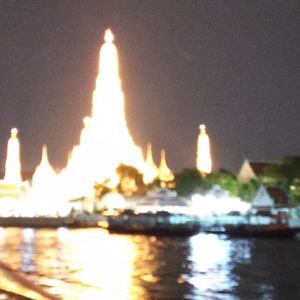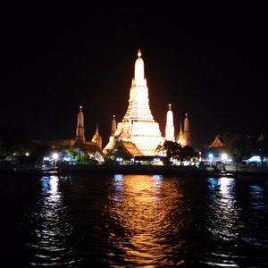 お迎えが早すぎて、船に乗るまで1時間ぐらい待ったけど、人がたくさんになると乗車券が買えないからだと思いました。プラプラできたので良かったです。船は1時間半ぐらいで長い感じはしましたがお目当のワットアルンがライトアップされてて素敵でした。中より外で観てる方が良かったですよ。食事は普通でした。揚げバナナは美味しかったです。カップルとかで行くのがいいかなと思いますが、ワットアルンみたい人はおすすめです。