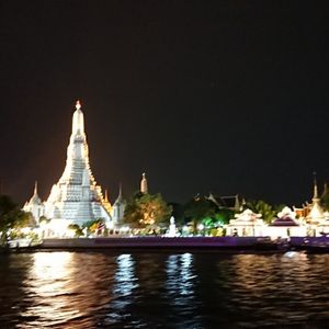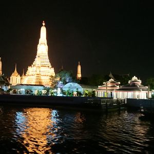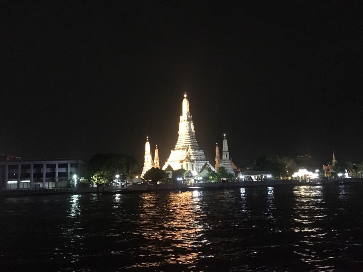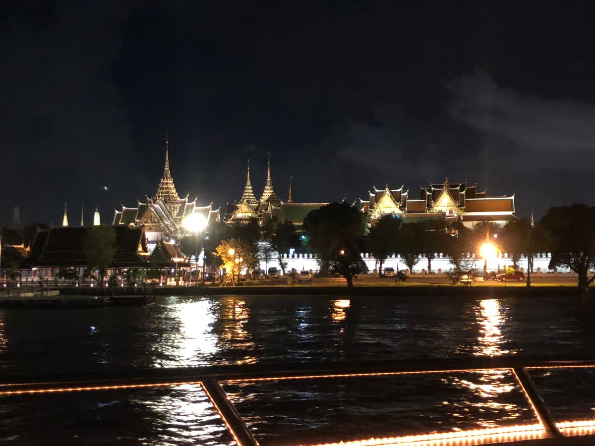 よるの寺院を川から見ることができる。クルーズの料理もおいしい。