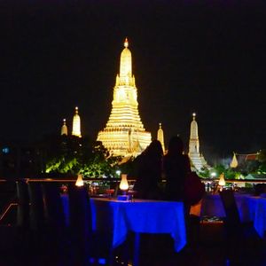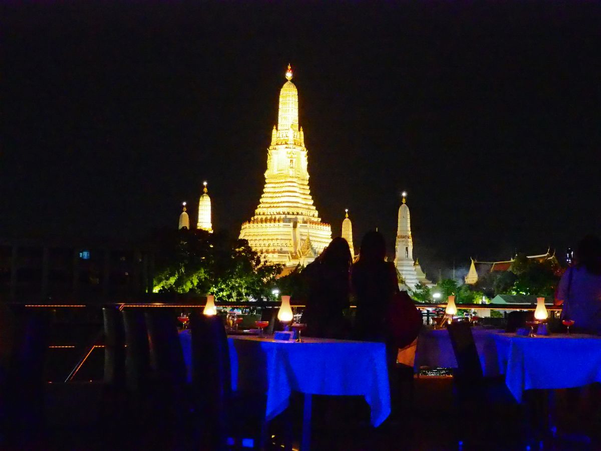 バンコクのきれいな夜景を期待して申し込みました。それほどきれいには見えませんでした。音楽も生バンドみたいに歌が入り、それなりの雰囲気になりつつあったのですが、最終的にはディスコみたいな状態になり、静かな雰囲気を楽しむには向いていないツアーと思います。食事は可もなく不可もないという感じでした。最初に水が出されますが、飲むのはお勧めできません。飲み物はツアー料金には含まれませんが、頼んで飲んだ方が無難と思います。