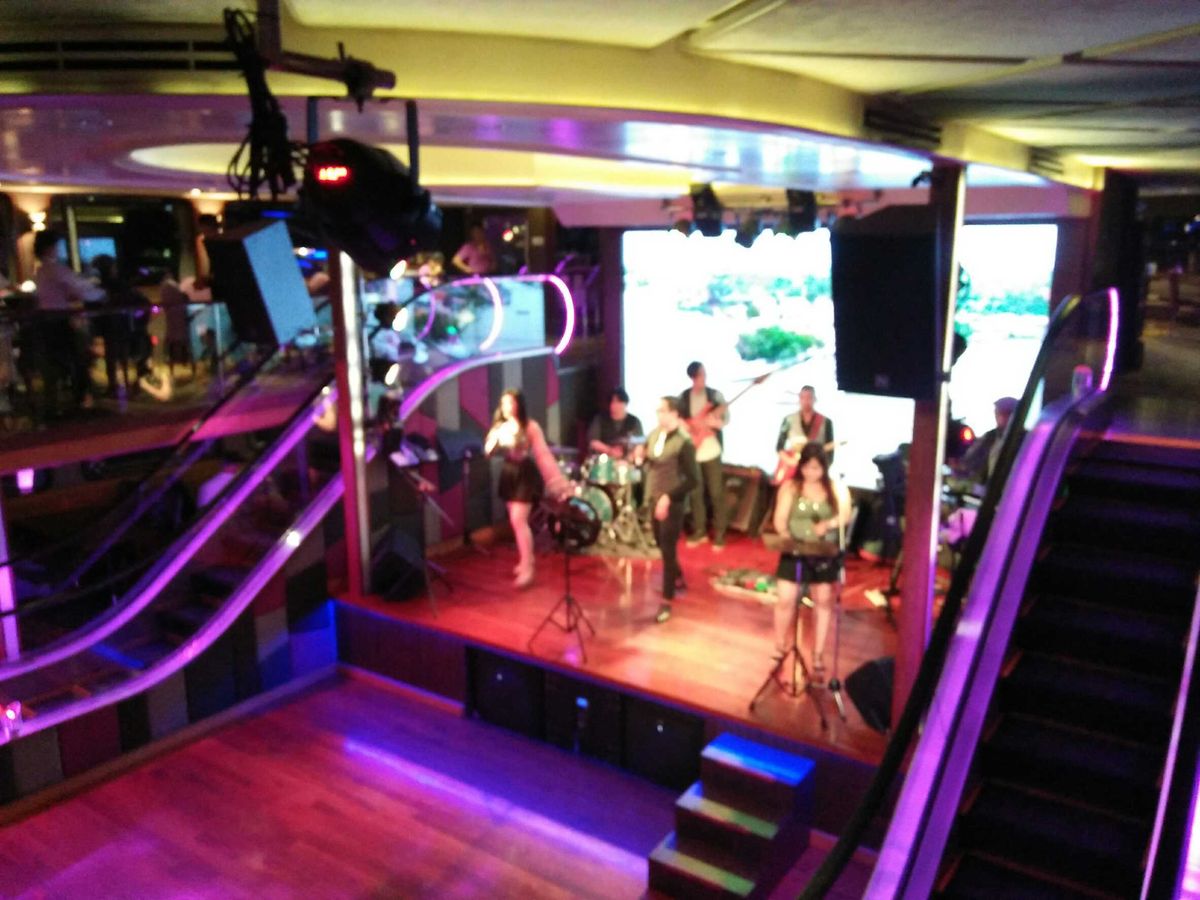 最上階デッキの生演奏はグランドパール号の方が良い。ワンダフルパール号のボーカルっぽい女性は空回りし過ぎで見てられなかった。