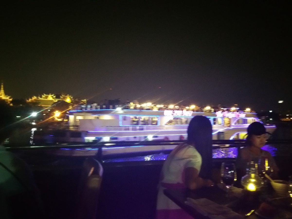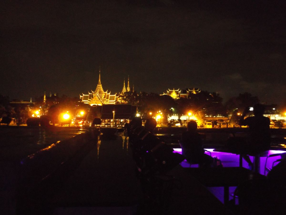 ただ、写真撮影のときのみ2階に移動した。船からのバンコクの夜景は、寺院がライトアップされて綺麗だった。
