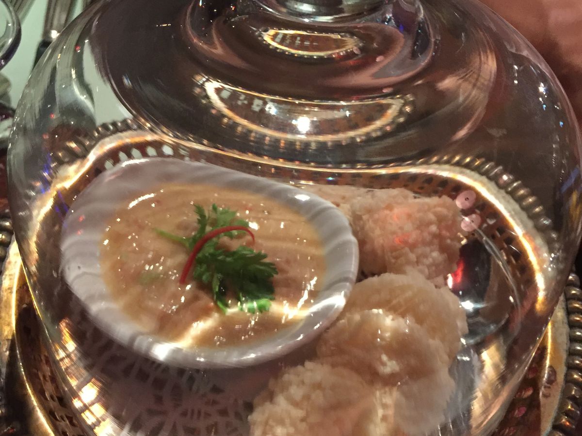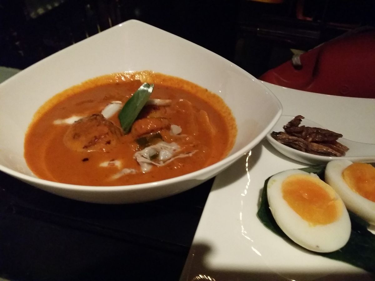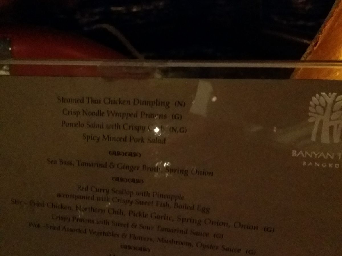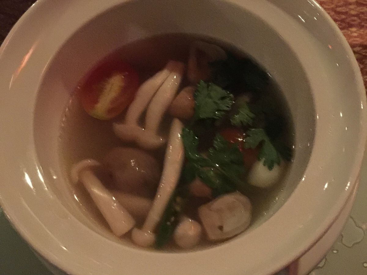 料理は、実はあまり期待していなかったのですけど、充分満足できるタイ料理でした。前菜、スープに続いて、タイ式にメインがガッツリ出てくるのですが、前菜が出た後に記念撮影タイムがあり、お料理はゆっくりサーブされるので、メインをいただく前に何となくお腹いっぱいになってしまい少し残念でした。ホタテとパイナップルのレッドカレーがとても美味しかったです。
