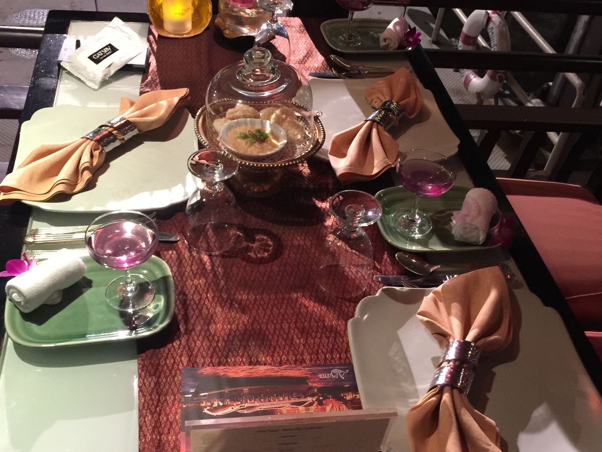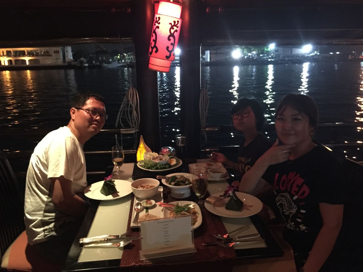 船の中で最高の景色も見れたし船中の雰囲気も落ち着いてゆっくりできました。タイ語が分からなくてもスタッフさんは優しく丁寧に料理を説明してくれたし、終わってスタッフさんが道路まで一緒に行ってホテルまでのタクシー代も交渉してくれた。着いて初めての日でしたので不安とかありましたけど、お陰様で心からホットしました♪(๑ᴖ◡ᴖ๑)♪