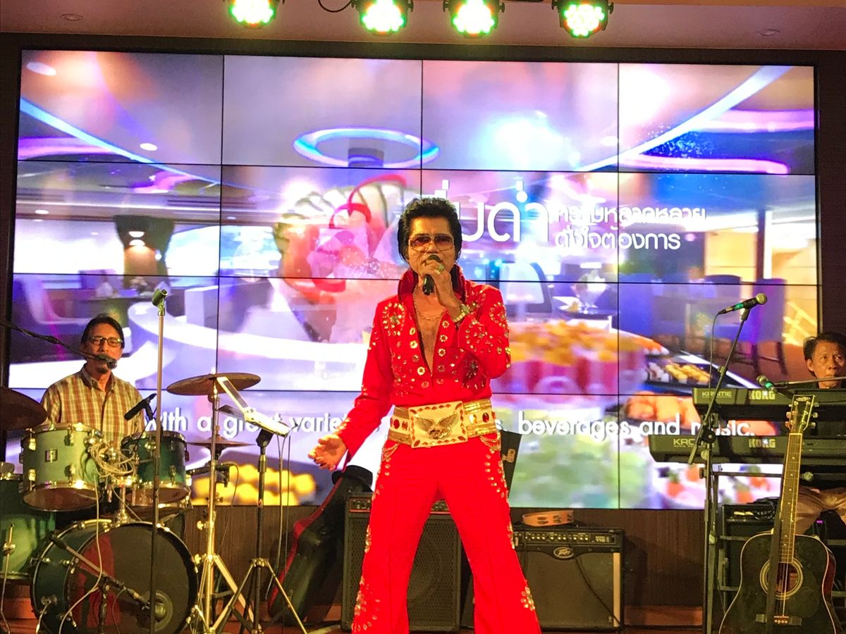 多くの日本人は料理を手早く食べて屋上デッキの生バンド(E プレスリー)に向かって行きました。生バンドに乗って踊っている方は居なかったので先頭を切って踊ってると日本人の熟年夫婦が入って来てくれました。折角なので参加したらシッカリ盛り上がって踊りましょう‼