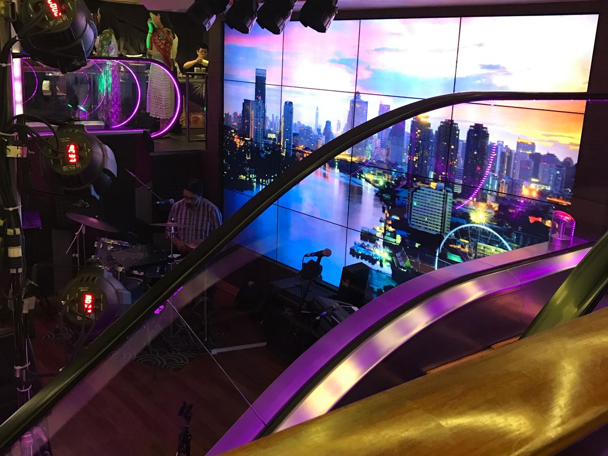 また、船内では歌手がその場を盛り上げた。前半はジャズのスタンダードナンバー。後半は、乗客は中国人が多いため谷村シンジの「昴」以外は中国大陸で流行っている楽曲が多いのには、日本人はその場の雰囲気で楽しむのみだった。