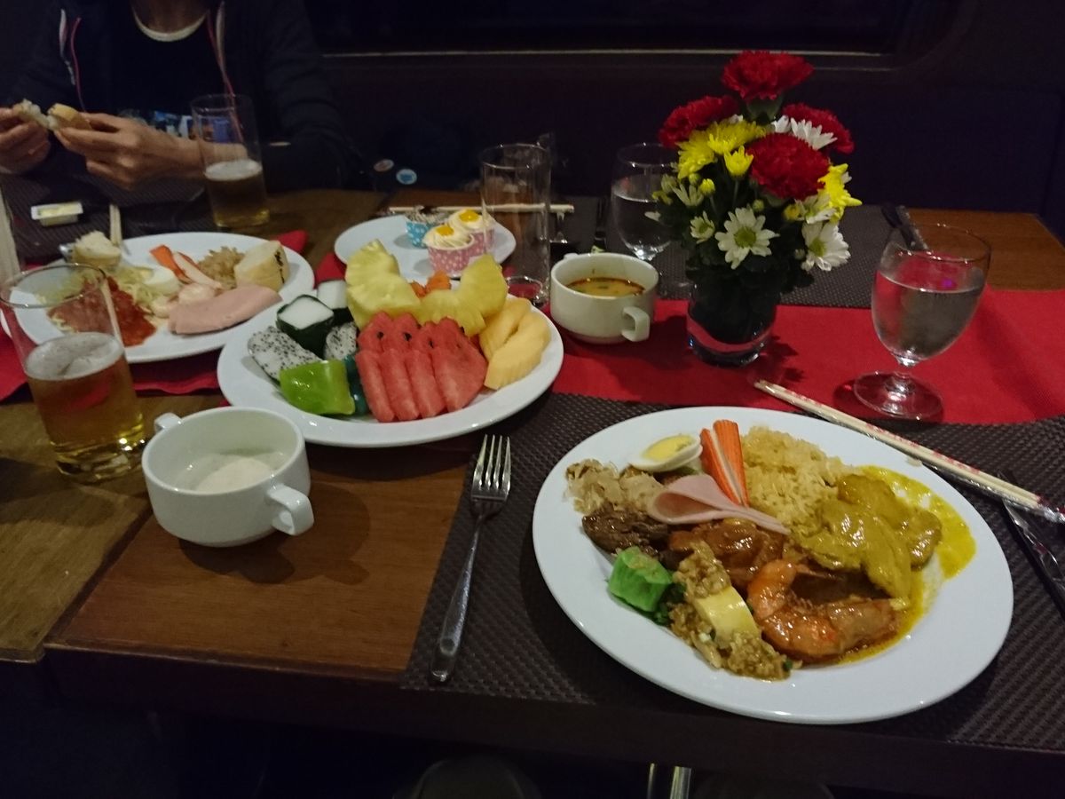 クルージングは豪華で、食べ物も種類豊富!ただ、味はふつうでした。